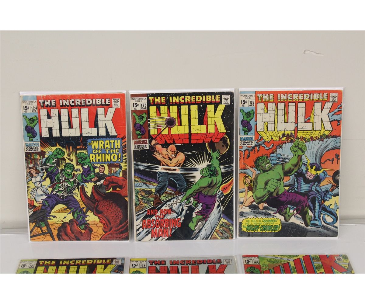 THE INCREDIBLE HULK #124, #125, #126, #127, #128, #129, #130, #131 SOLID COPIES IN LOWER GRADE