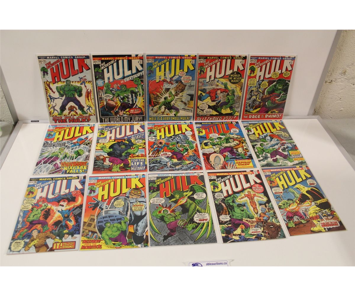 THE INCREDIBLE HULK (1969) #152-186. INCLUDES #155- 1ST APPEARANCE SHAPER, #163- 1ST APPEARANCE THE GREMLIN 15 BOOKS TOTAL IN MID TO HIGH GRADE AVERAGE.