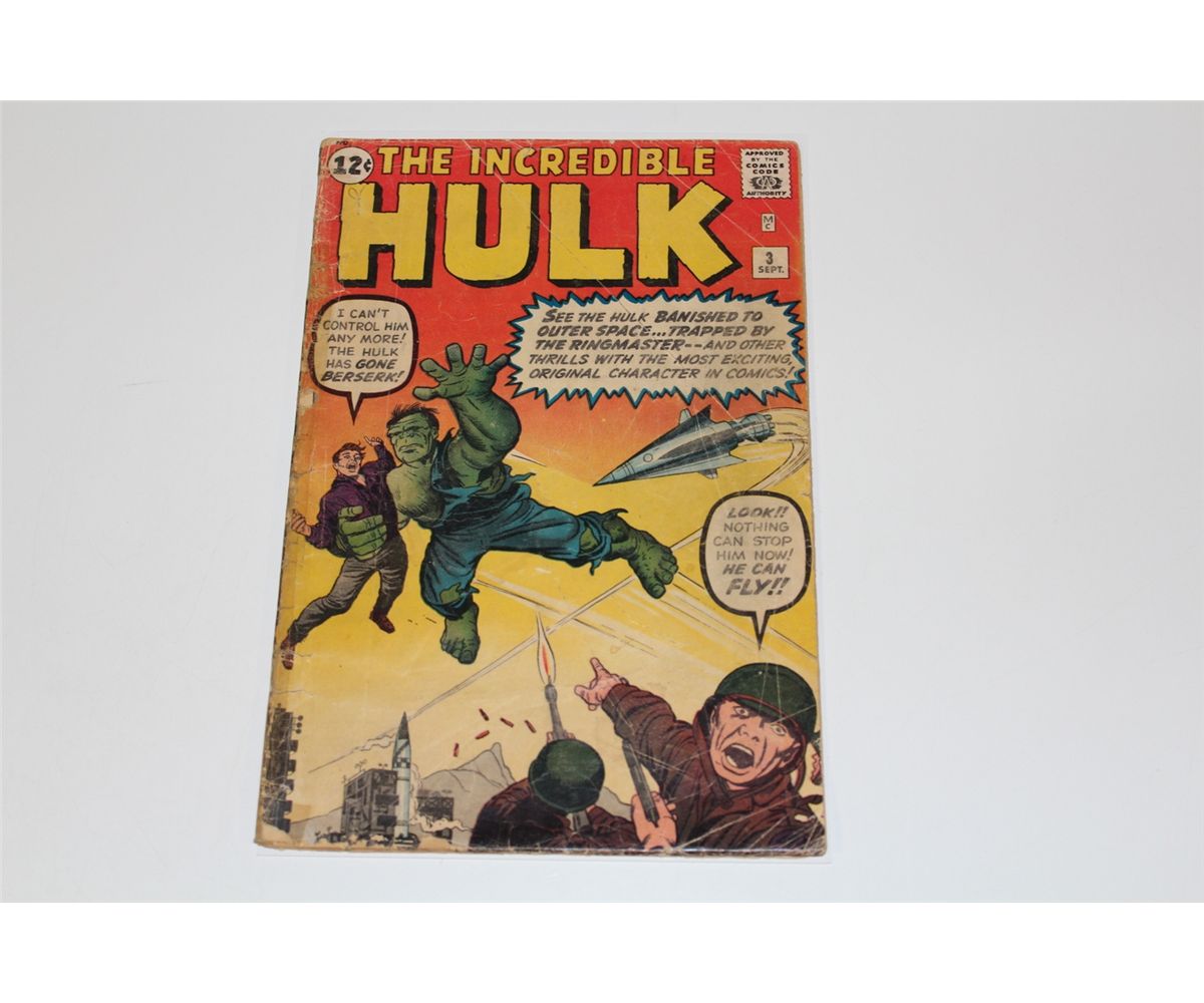 THE INCREDIBLE HULK #3 (1962) ORIGIN RETOLD! 1ST APP. RINGMASTER AND THE CIRCUS OF CRIME. LOWER GRADE, COMPLETE. TAPE ON 3/4 OF THE SPINE.