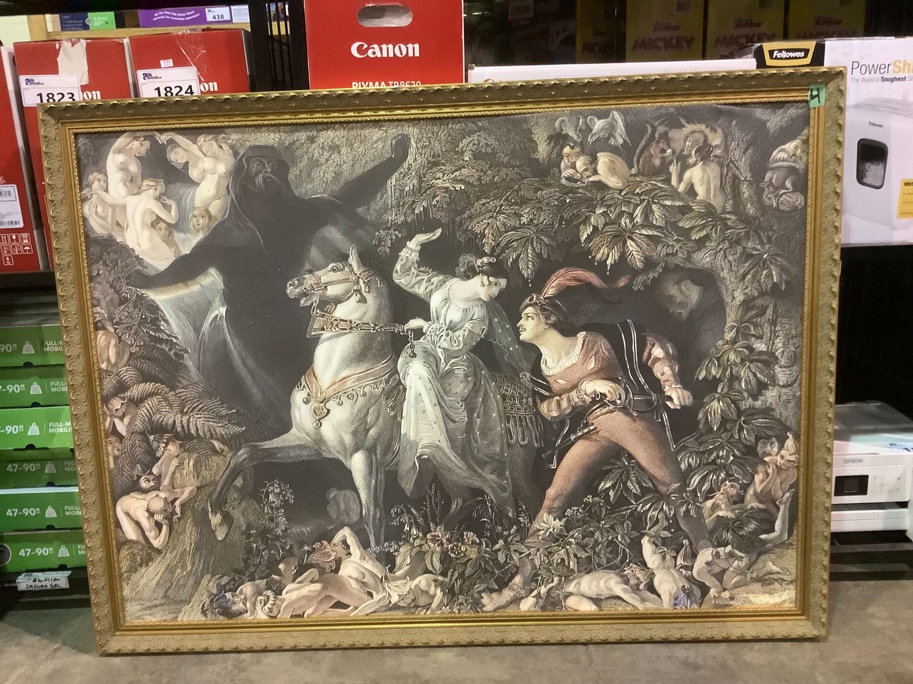 THE MAGICIANS SET DEC GILDED FRAMED RENAISSANCE THEMED PRINT 51"X38-1/2"
