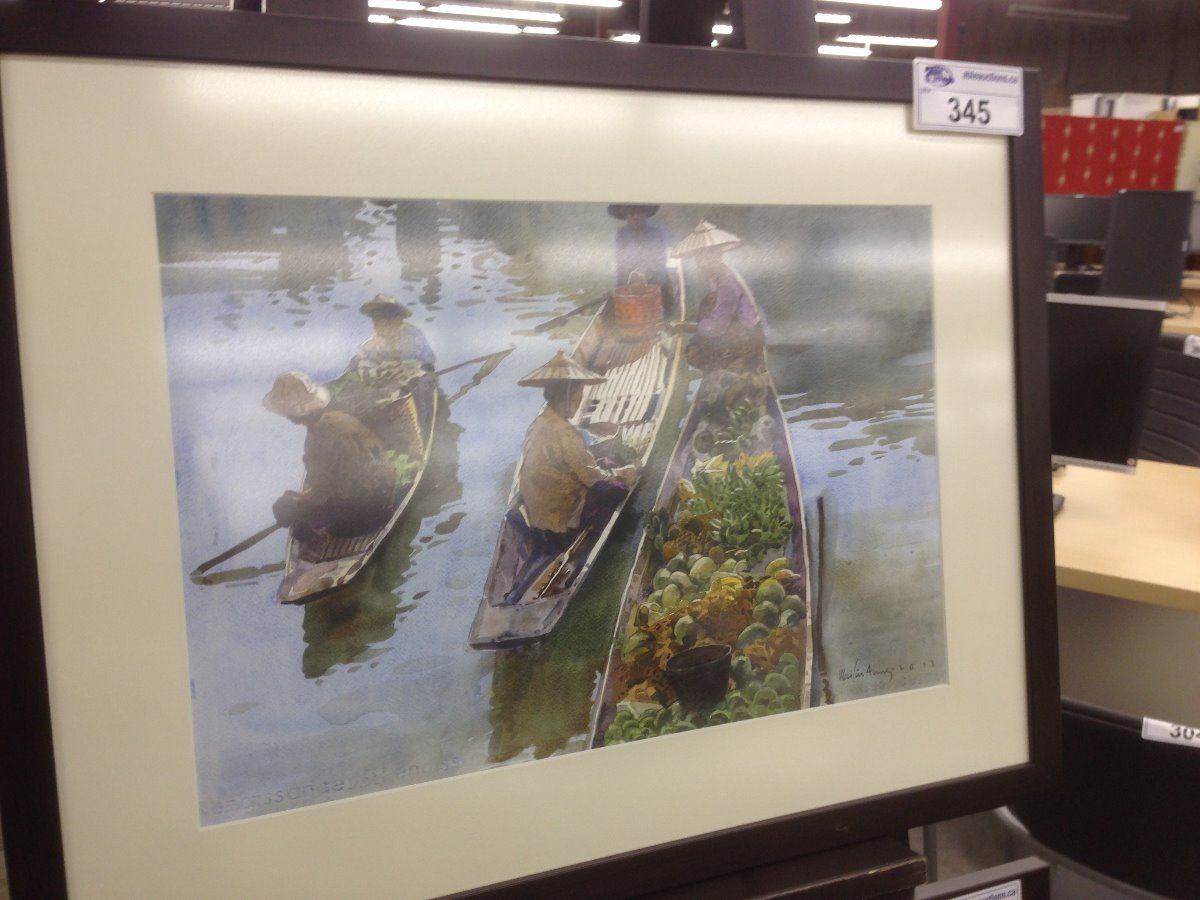 "THE RIVER MARKET" FRAMED WATERCOLOUR