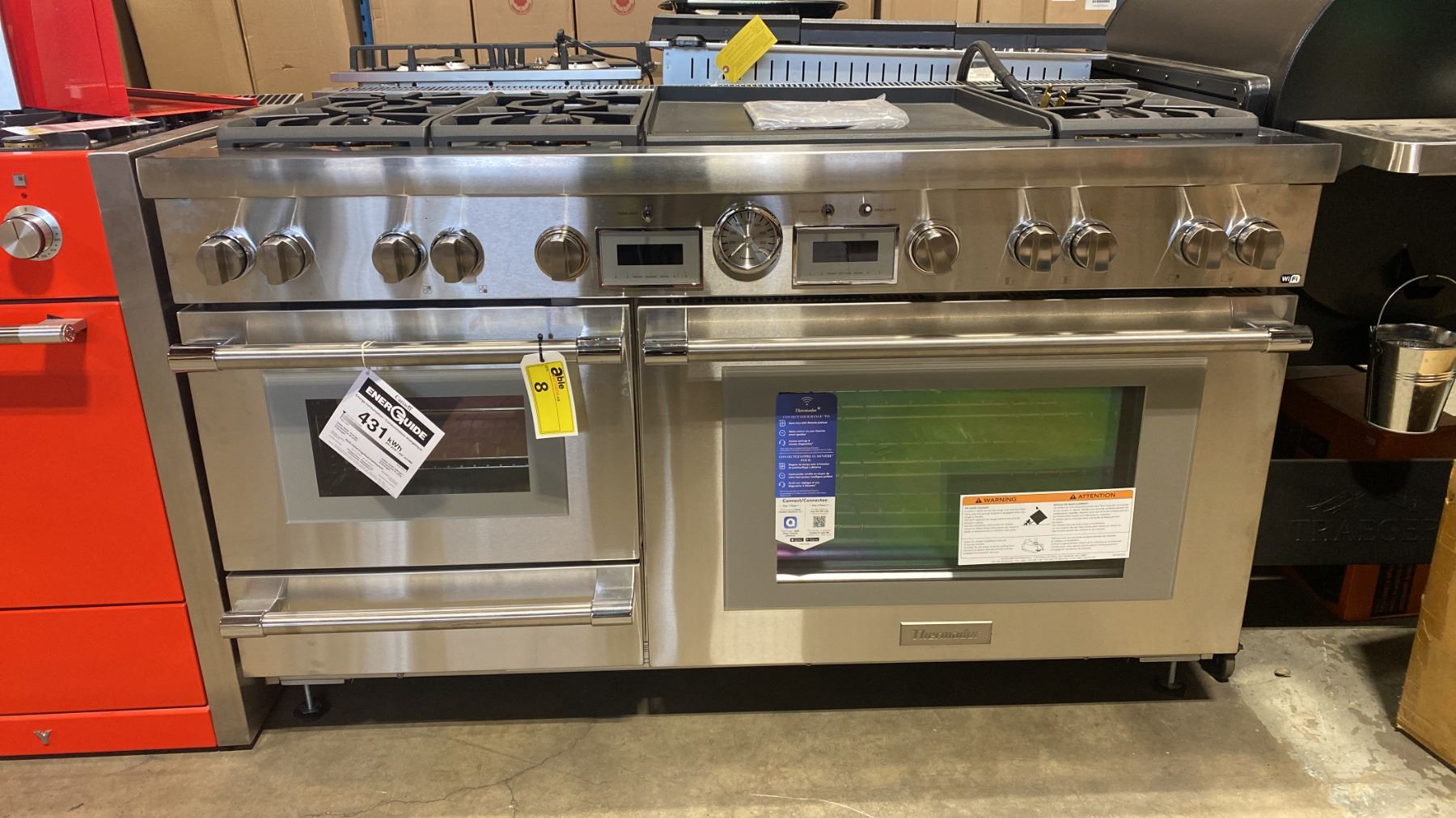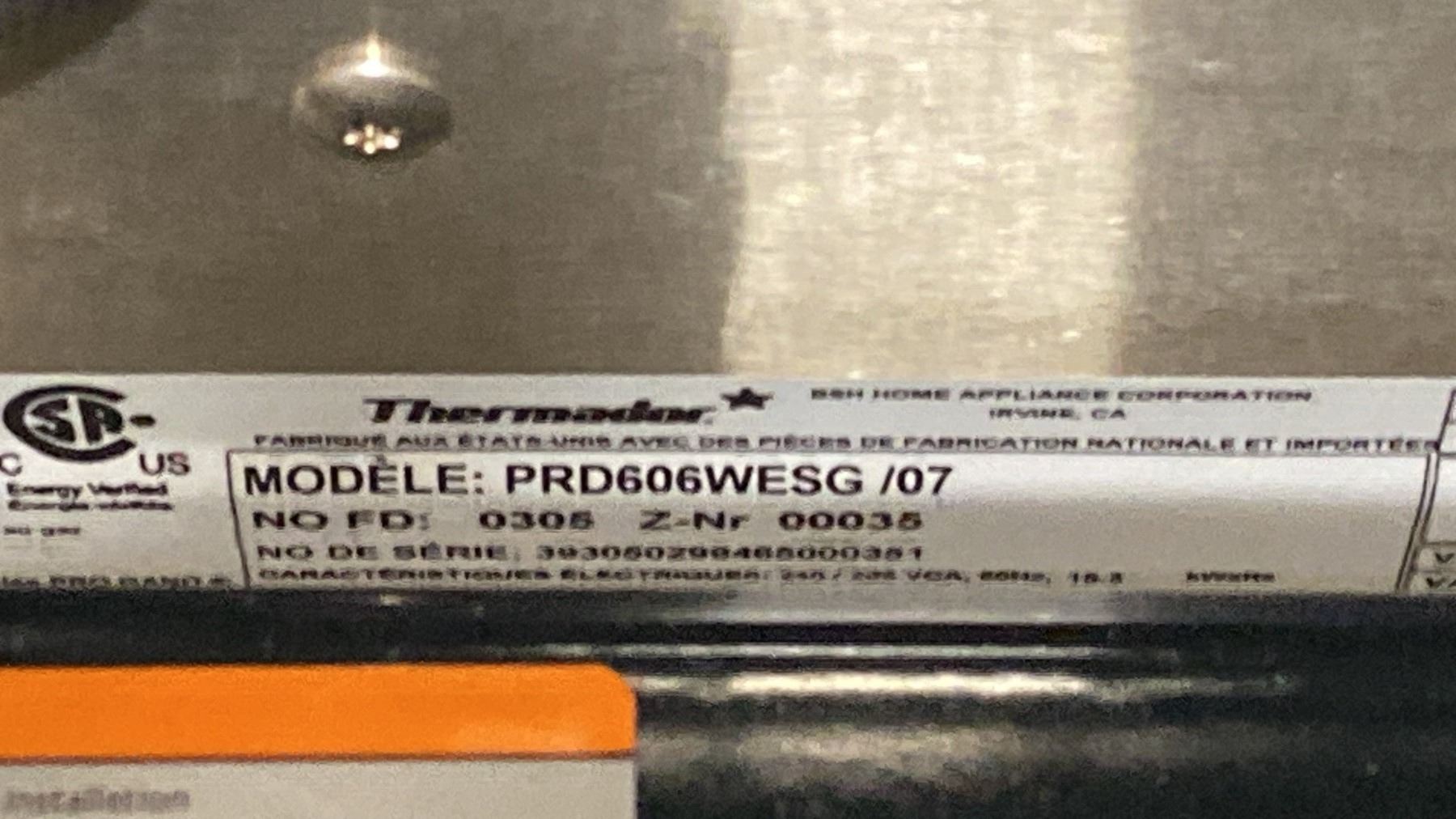 THERMADOR MODEL PRD606WESG. STAINLESS STEEL PROFESSIONAL DUAL-FUEL FREESTANDING RANGE WITH 6 BURNERS 2 ZONE 24" GRIDDLE, DOUBLE OVEN, WARMING DRAWER, SMART TECHNOLOGY & SELF CLEANING SN 393050299465000351 RETAIL PRICE $48,779.00