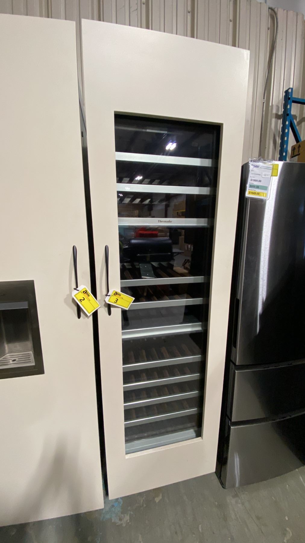 THERMADOR MODEL T24IW901SP. WHITE SINGLE DOOR GLASS FRONT BUILT IN WINE REFRIGERATOR SN 229070200289000300 RETAIL PRICE $12,889.99