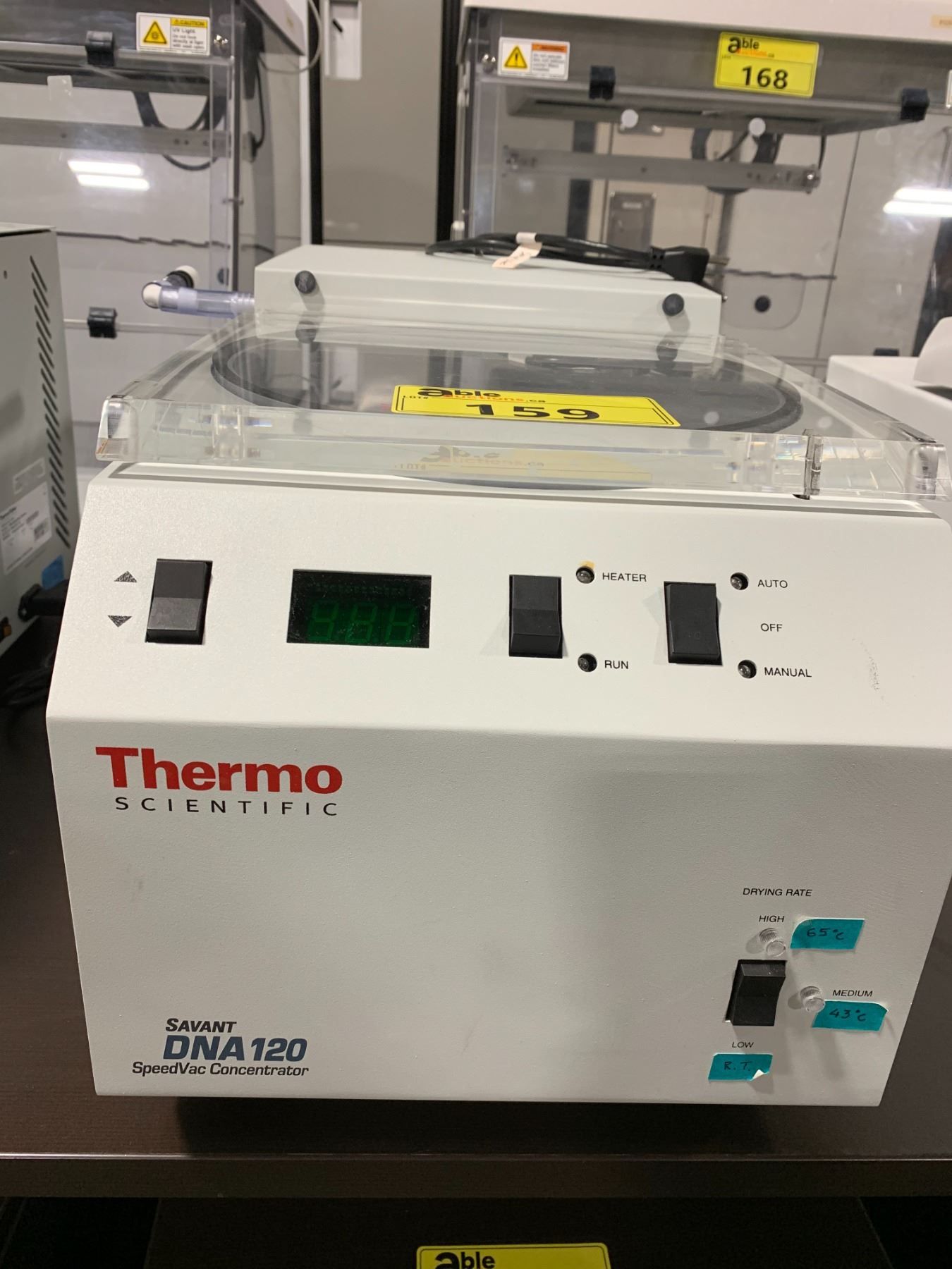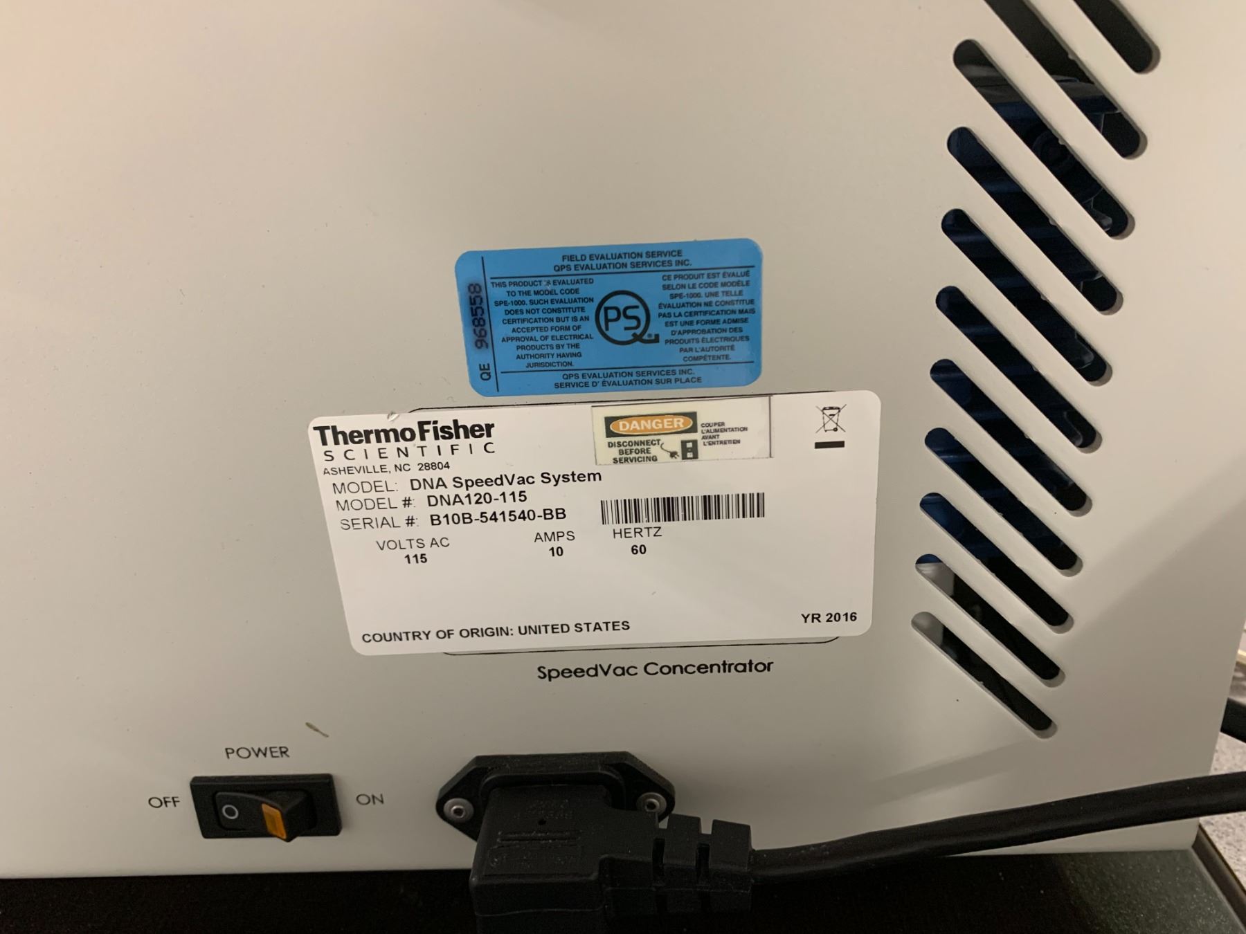 THERMO SCIENTIFIC SAVANT DNA 120 COMMERCIAL LABORATORY SPEEDVAC CONCENTRATOR WITH POWER CABLE