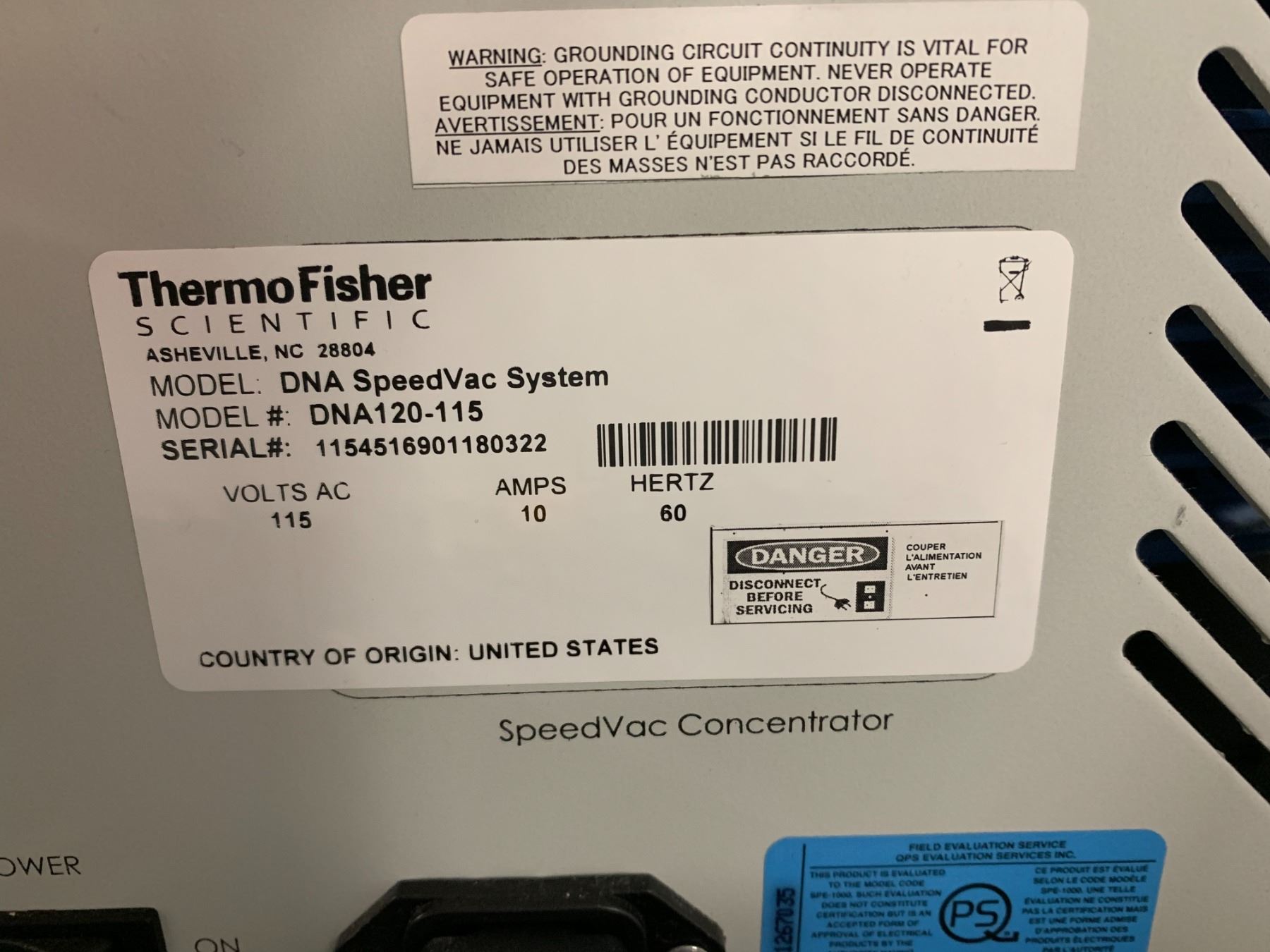 THERMO SCIENTIFIC SAVANT DNA 120 COMMERCIAL LABORATORY SPEEDVAC CONCENTRATOR WITH POWER CABLE