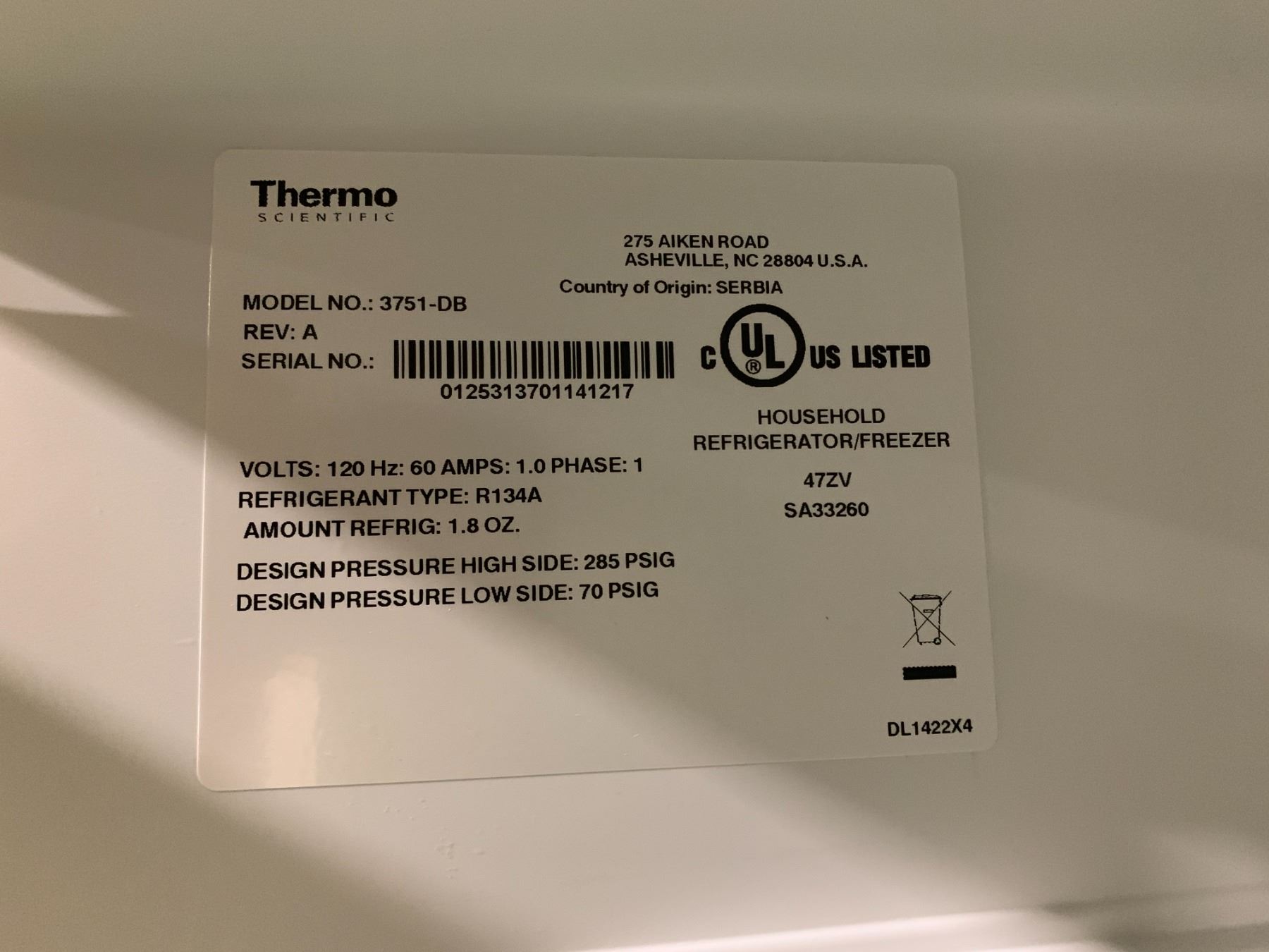 THERMO SCIENTIFIC WHITE COMMERCIAL LABORATORY MINI FRIDGE