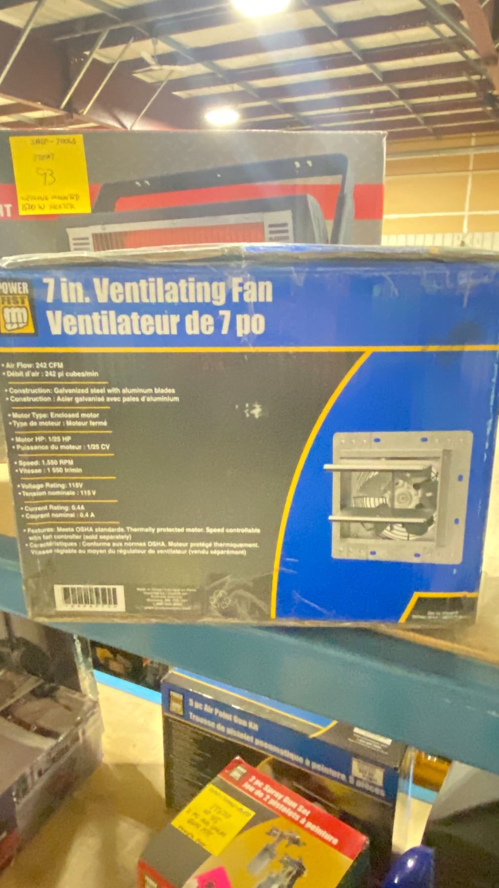 THERMO SPHERE 1,500W CEILING MOUNTED QUARTZ HEATER WITH LIGHT, POWER FIST 7" VENTILATION FAN, &