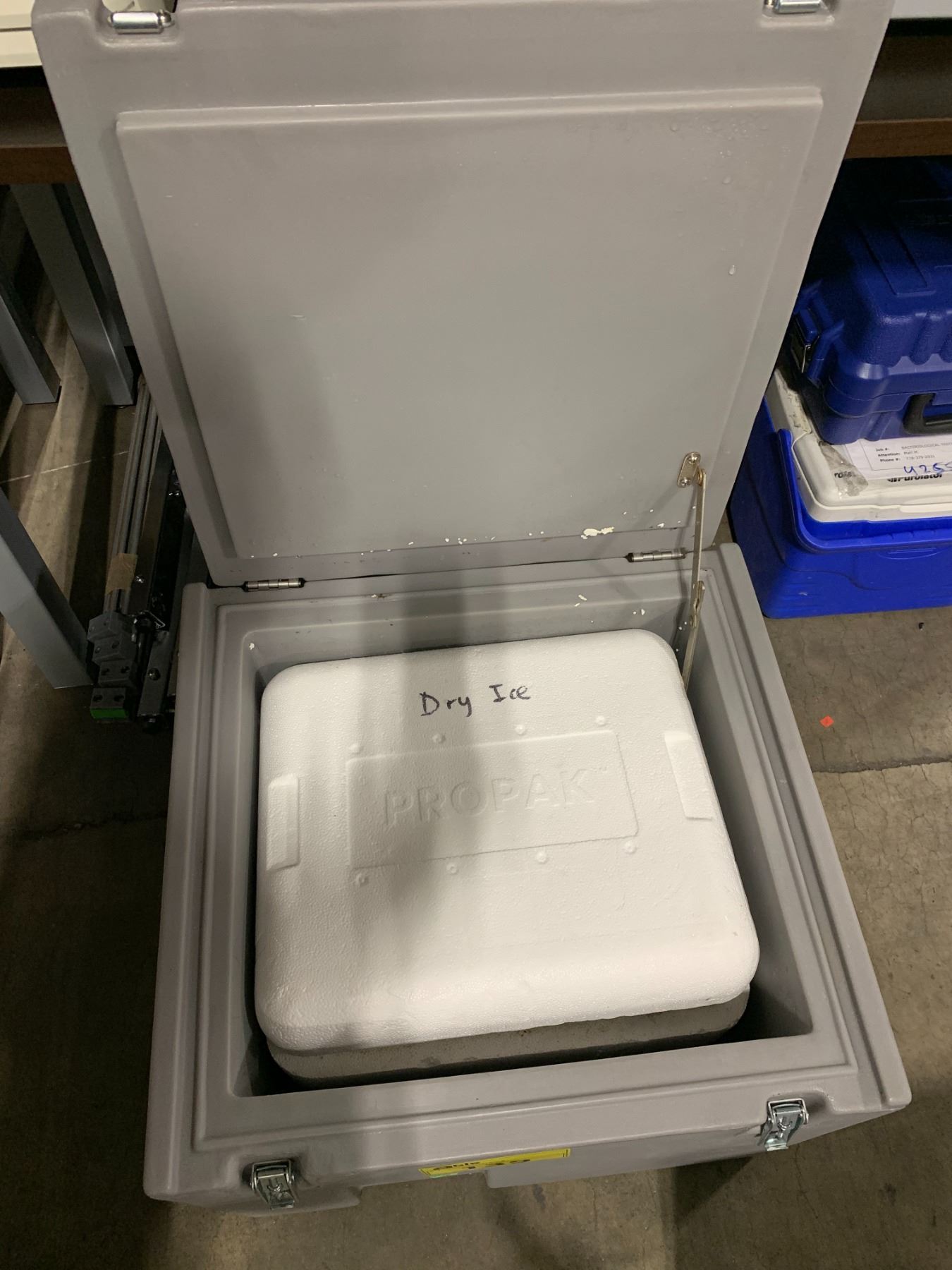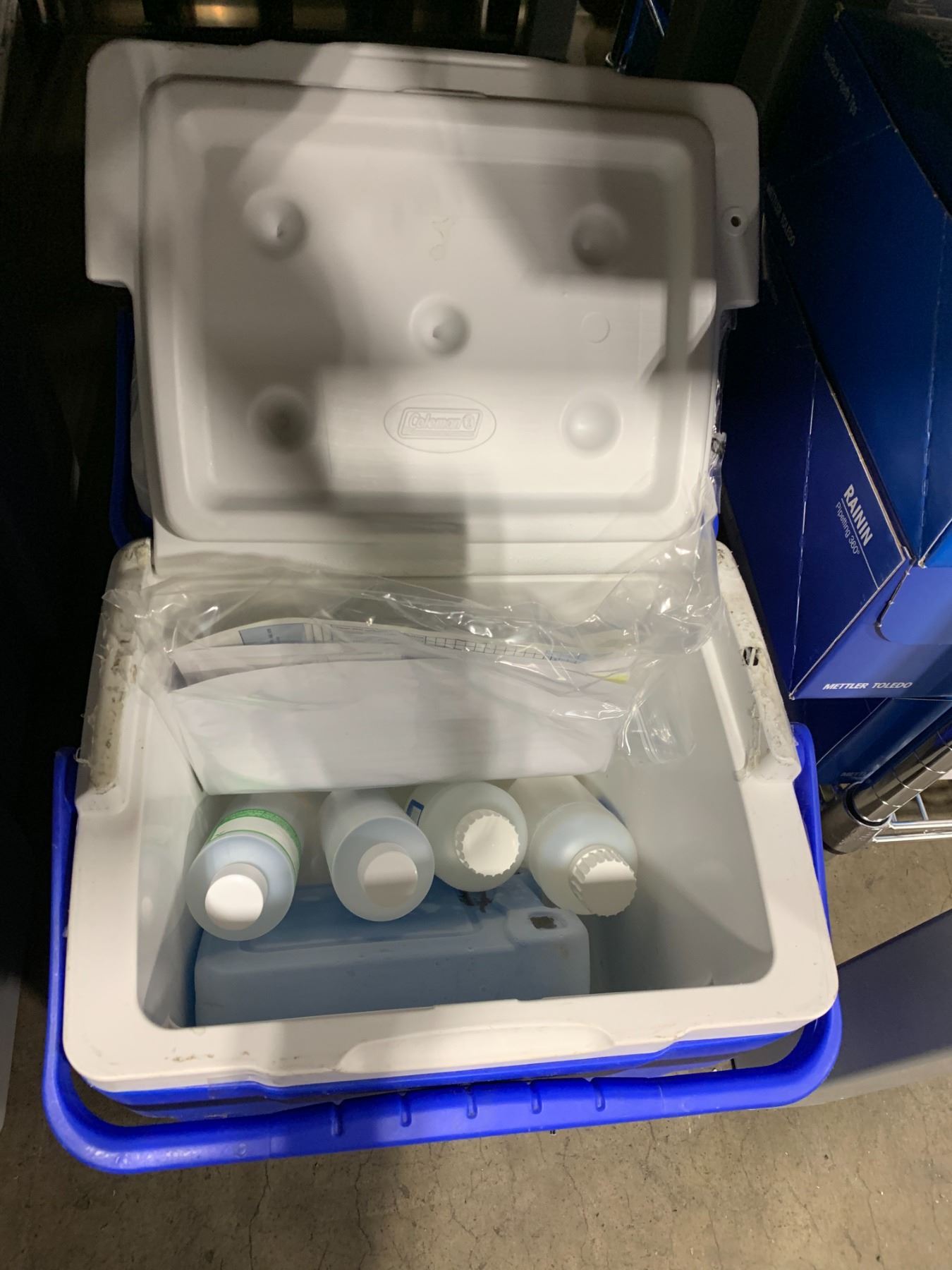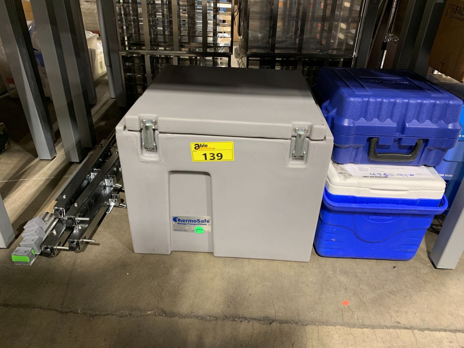 THERMOSAFE TRANSPORT CHEST, LABORATORY EQUIPMENT MOVING SYSTEM, & 3 ASSORTED COLD TRANSPORT CHESTS