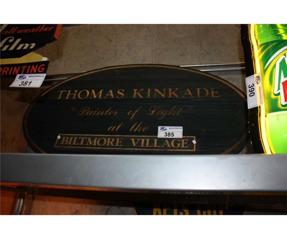 THOMAS KINCAIDE PAINTER OF LIGHT AT THE BUILTMORE VILLAGE ADVERTISEMENT STOREFRONT WOODEN SIGN
