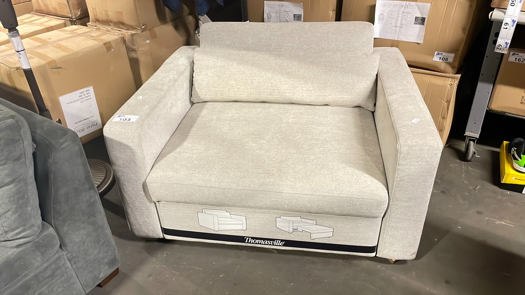 THOMASVILLE CREAM FABRIC CONVERTIBLE SINGLE BED DEEP SEAT ARMCHAIR