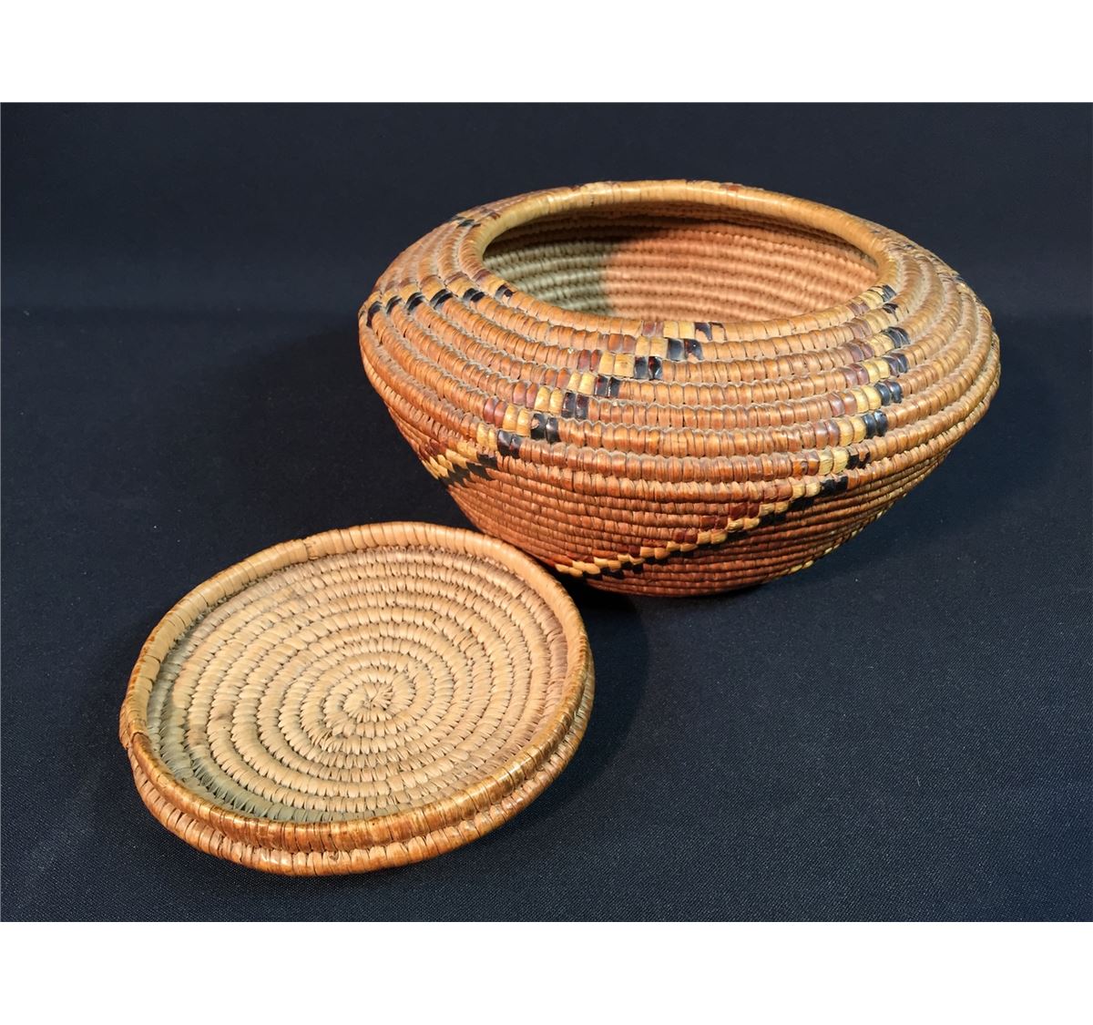 THOMPSON RIVER LIDDED, BASKET 5" HIGH X 10" DIAMETER
