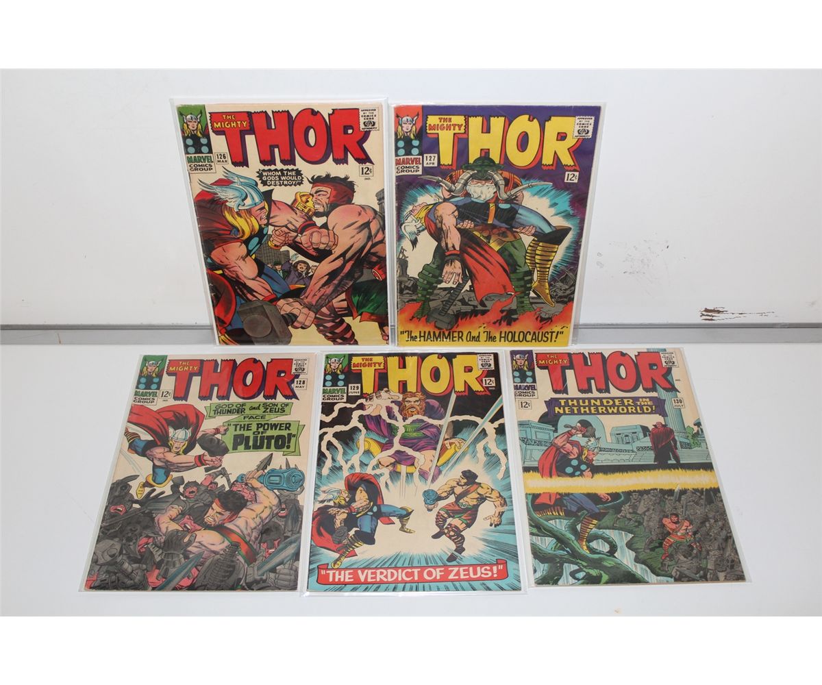 THOR #126 -130 (1966) CLASSIC THOR VS. HERCULES STORYLINE. #126 - 1ST ISSUE THIS TITLE. SHARP MID GRADE AVG. GLOSSY, TIGHT & SUPPLE. NICE 5 ISSUE RUN!