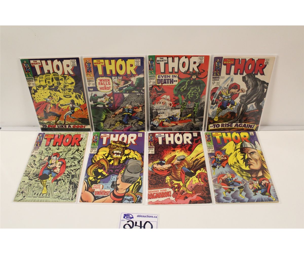 THOR #139, 149-151, 154-55, 157-58 (1967) 8 SOLID MID GRADE AVERAGE COPIES. INCLUDES #149- ORIGIN
