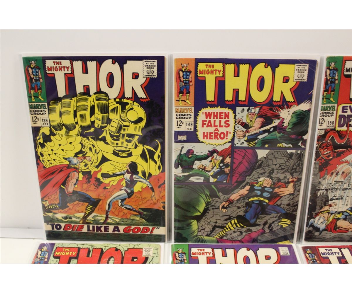 THOR #139, 149-151, 154-55, 157-58 (1967) 8 SOLID MID GRADE AVERAGE COPIES. INCLUDES #149- ORIGIN MEDUSA, CRYSTAL, MAXIMUS, GORGON AND KARNAK
