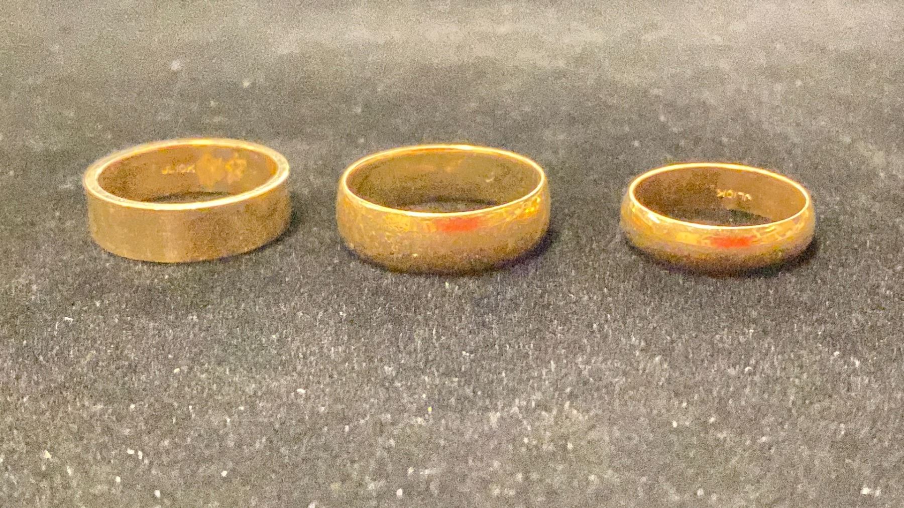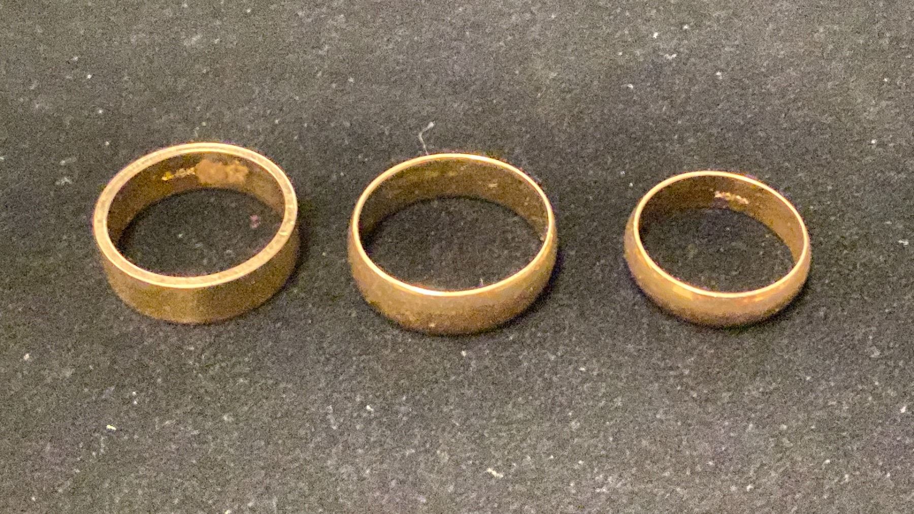 THREE APPROX 10K WEDDING RINGS (12.6G)