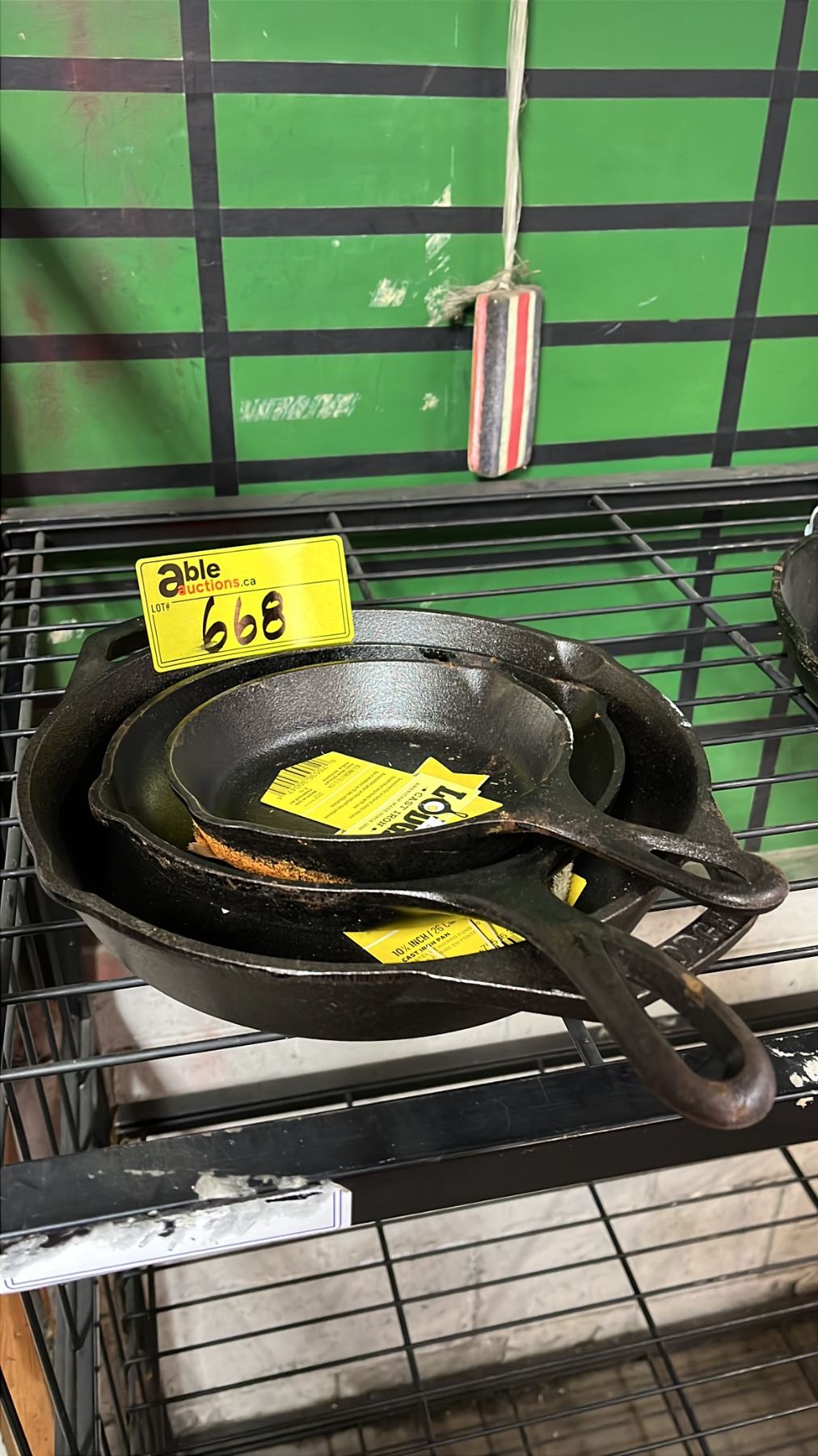 THREE CAST IRON PANS