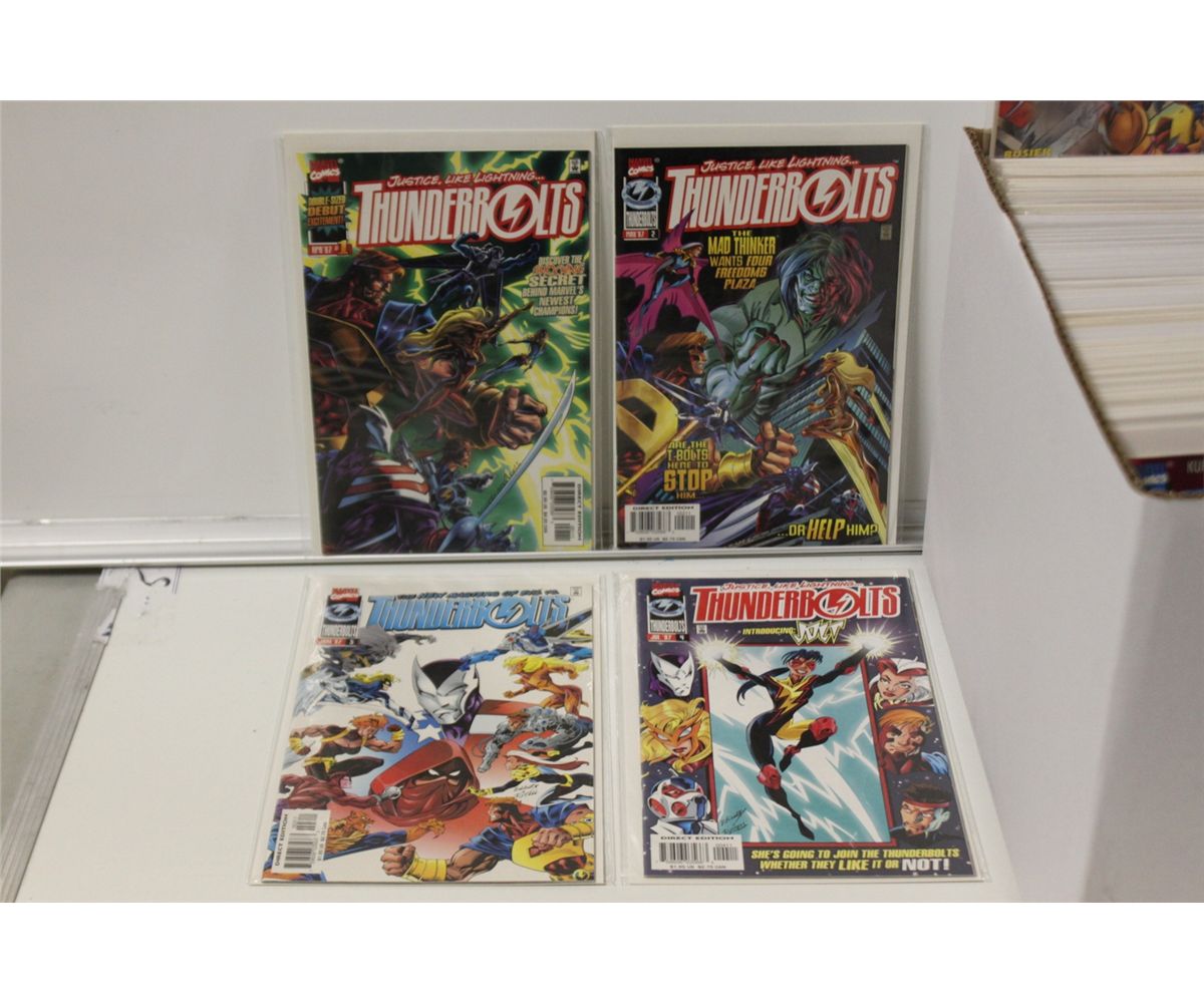 THUNDERBOLTS (1997) LONG RUN SHORT BOX.  INCLUDES #1-34 CONSECUTIVE & 2 COPIES OF #1-19. HIGH GRADE AVERAGE.