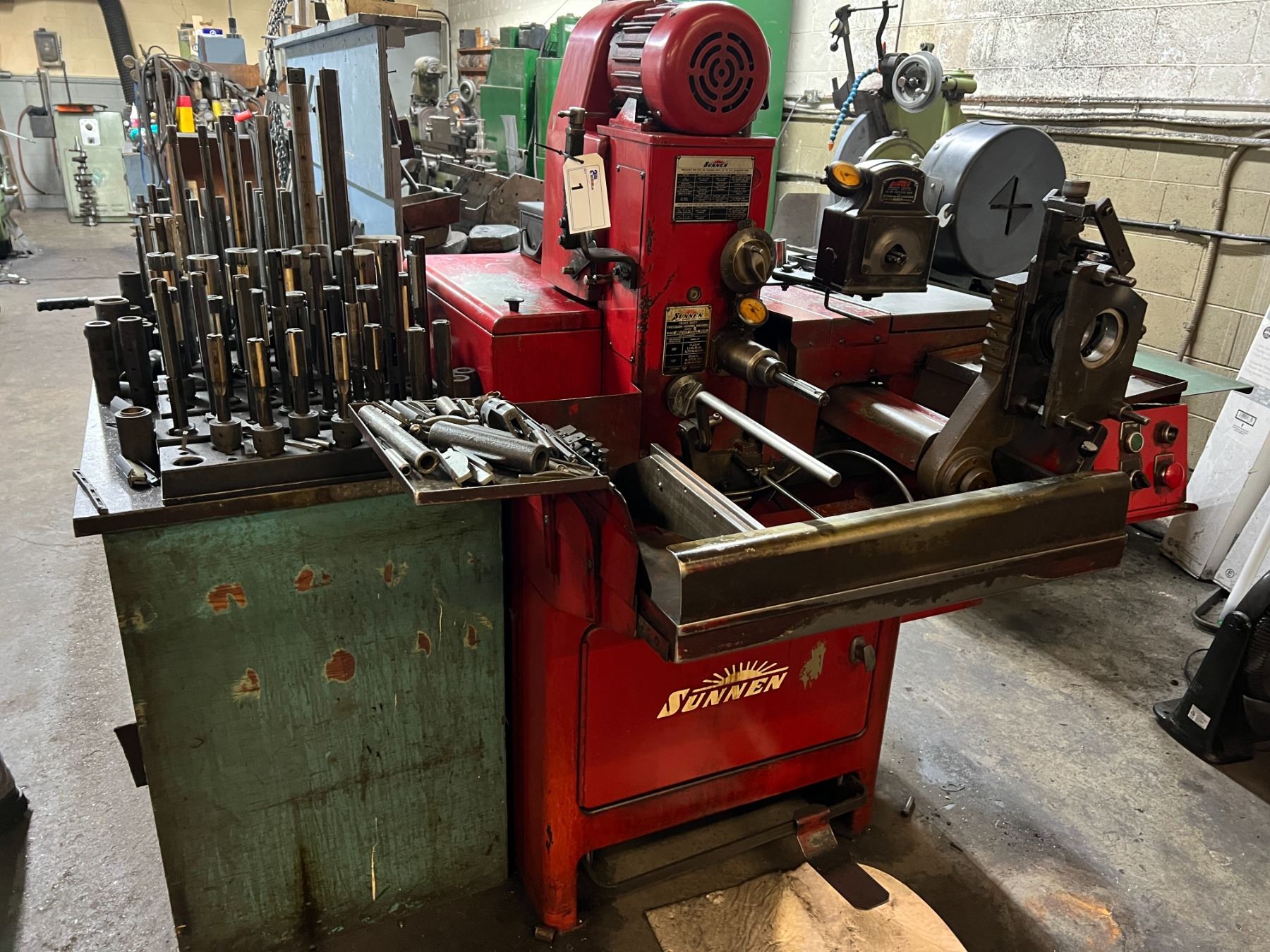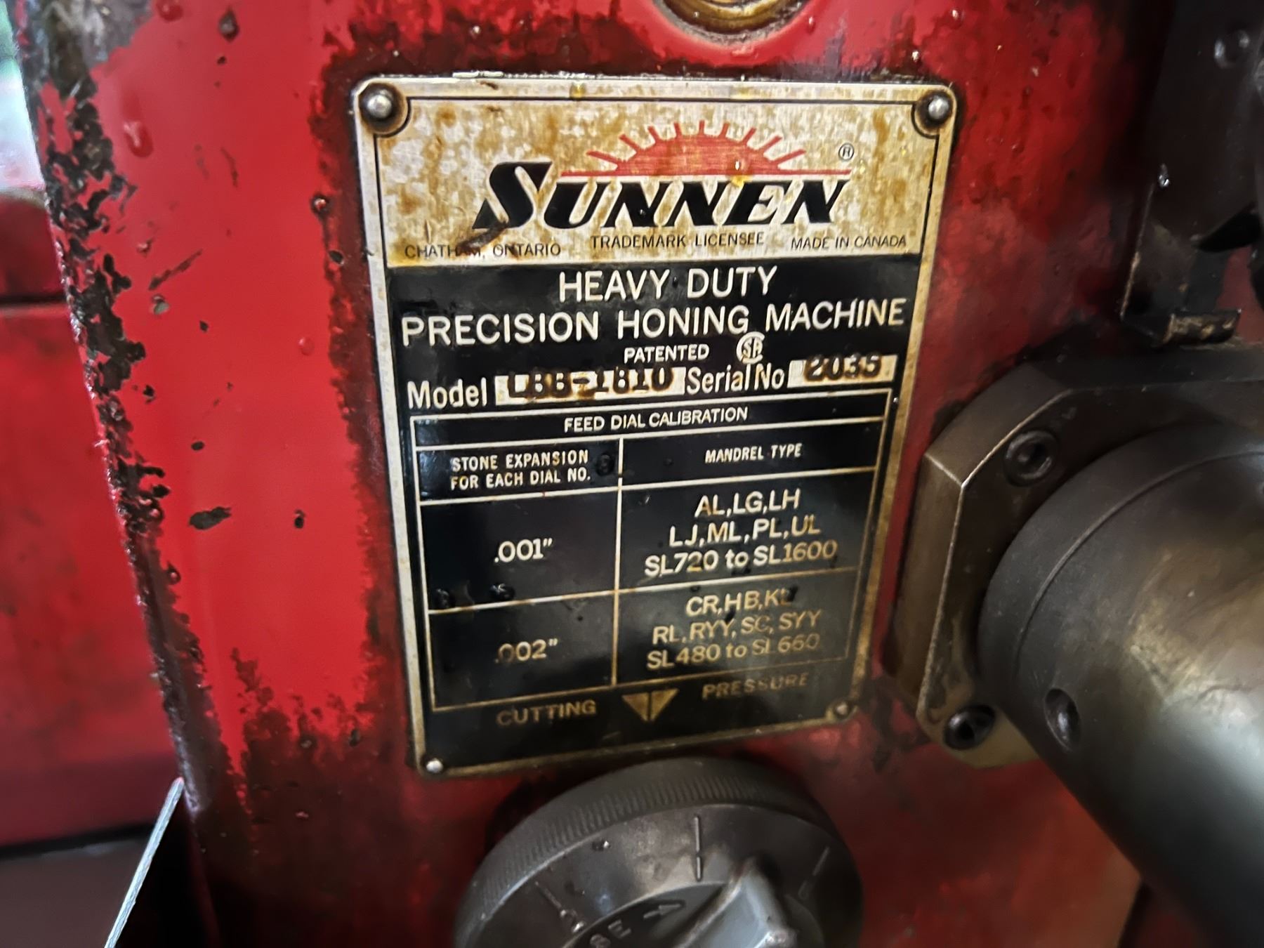 *THURS* SUNNEN HEAVY DUTY PRECISION HONING MACHINE. MODEL LDB-1810. COMES WITH LARGE SELECTION OF MANDRELS, AND SUNNEN CRG-750 CAP GRINDER. ITEM IS PRIMARILY USED FOR RESIZING. 220V 3 PHASE. COMES WITH ACCESSORIES - BENCH NOT INCLUDED. (ONLINE EST PRICE $6500