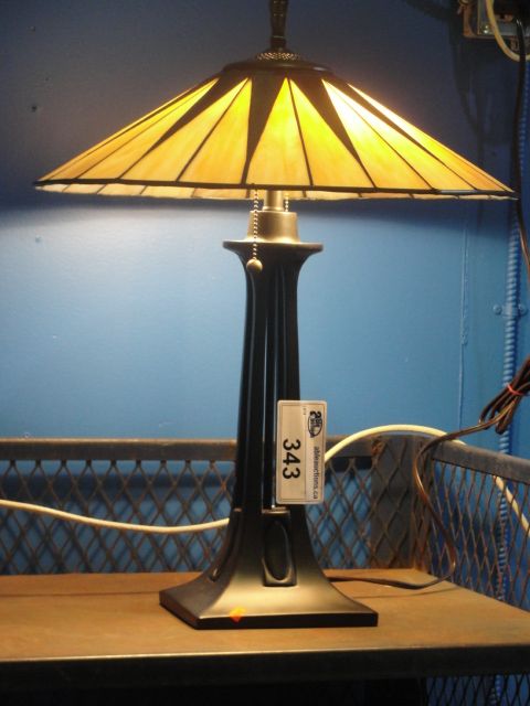 TIFFANY STYLE LEADED STAINED GLASS TABLE LAMP