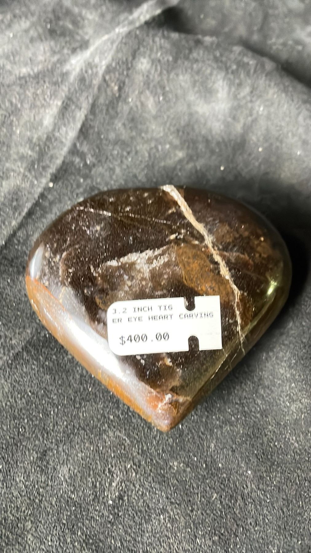 TIGER EYE HEART CARVING 3.2" RETAIL $400