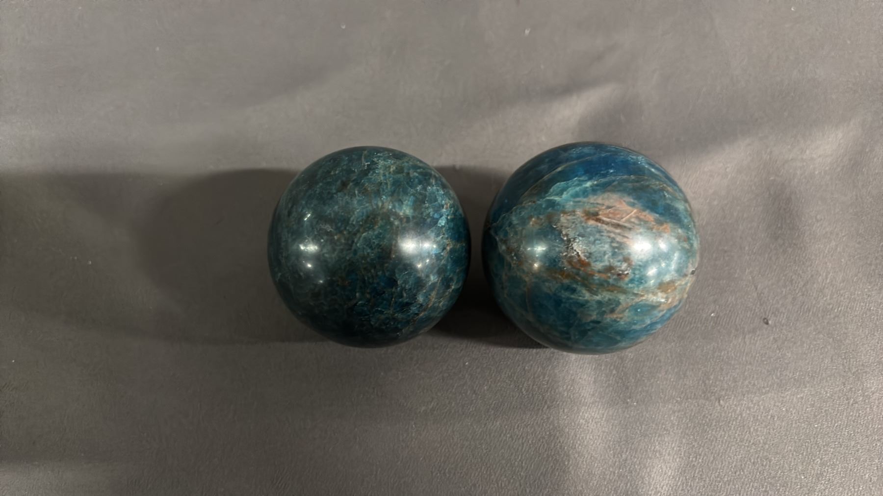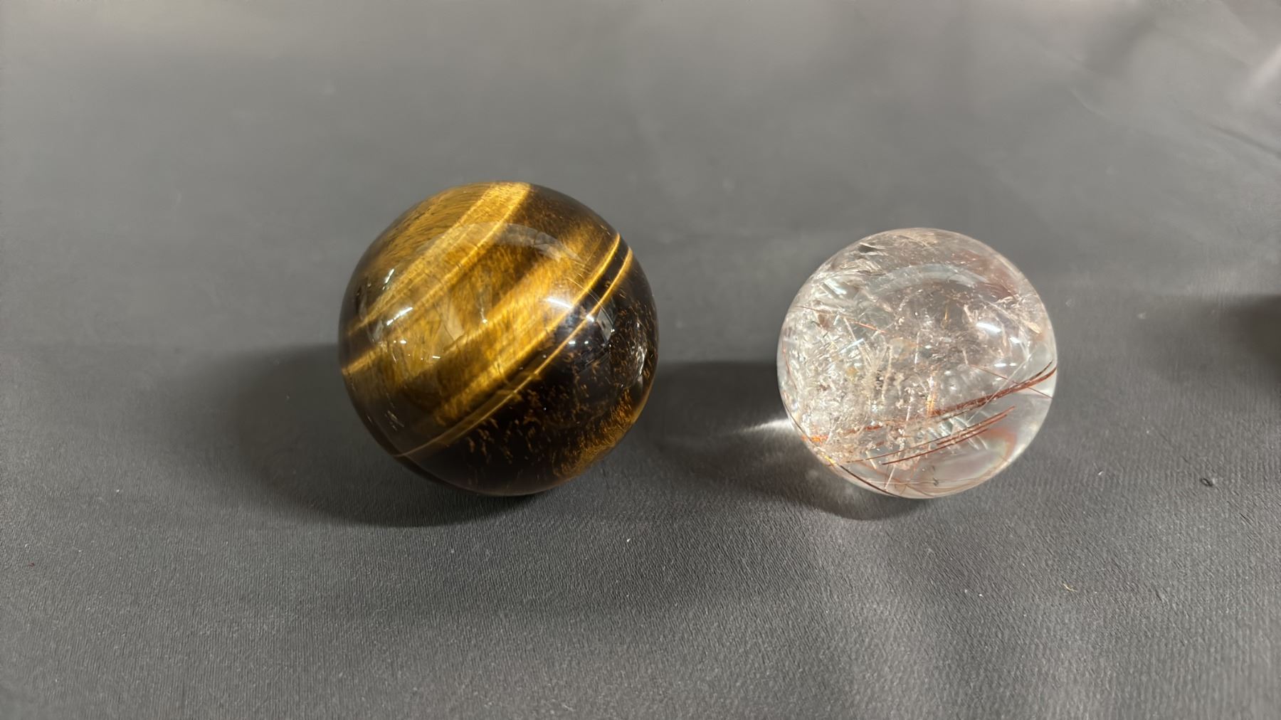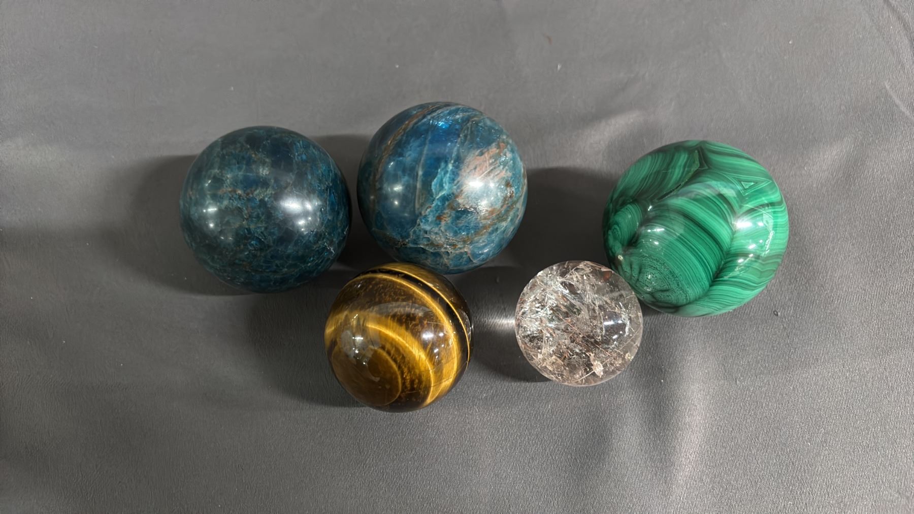 TIGER'S EYE, APATITE, MALACHITE & RUTILATED QUARTZ SPHERES: SIZES RANGE 1" - 2" DIAMETER