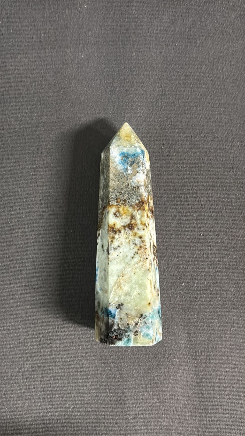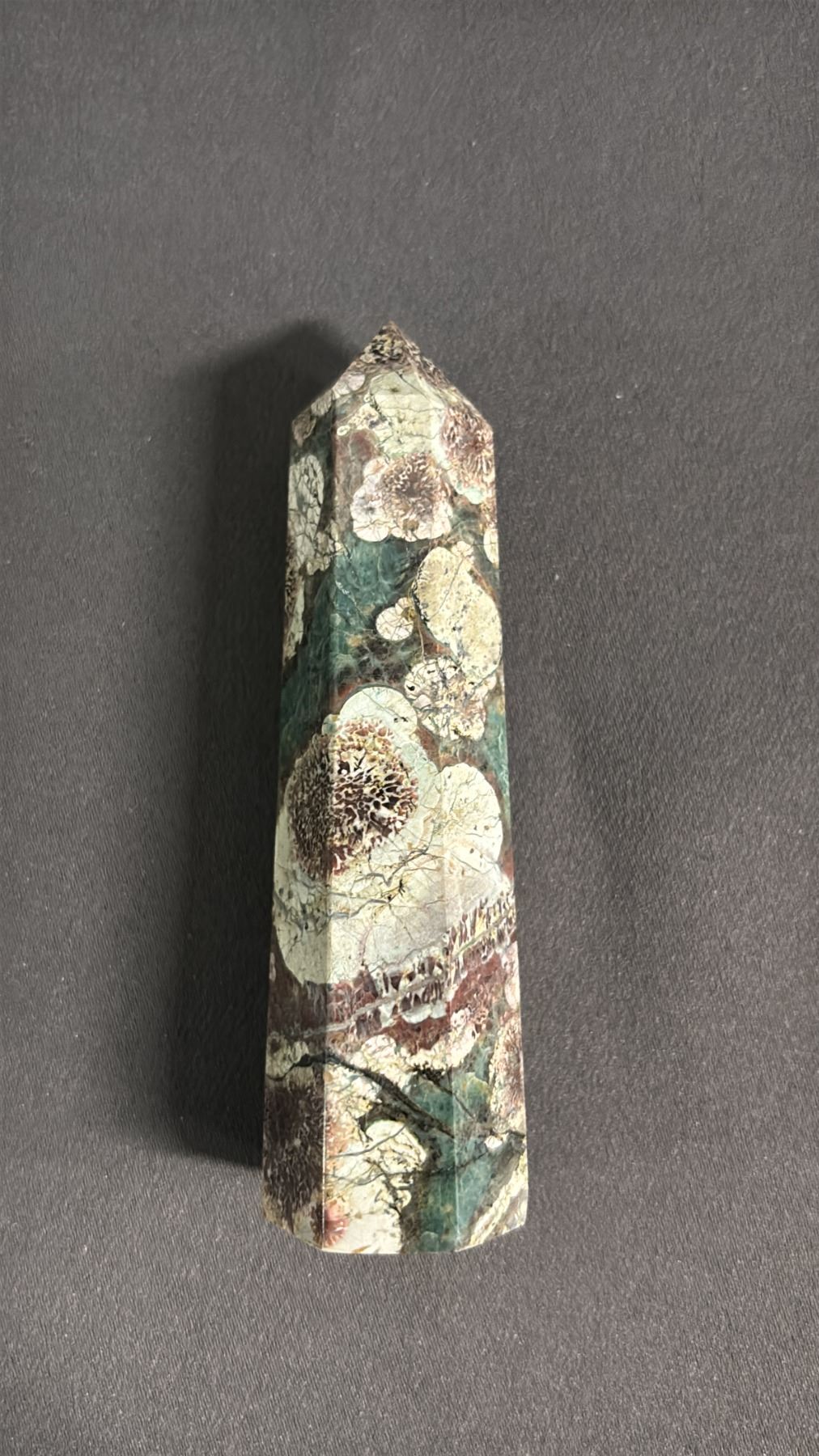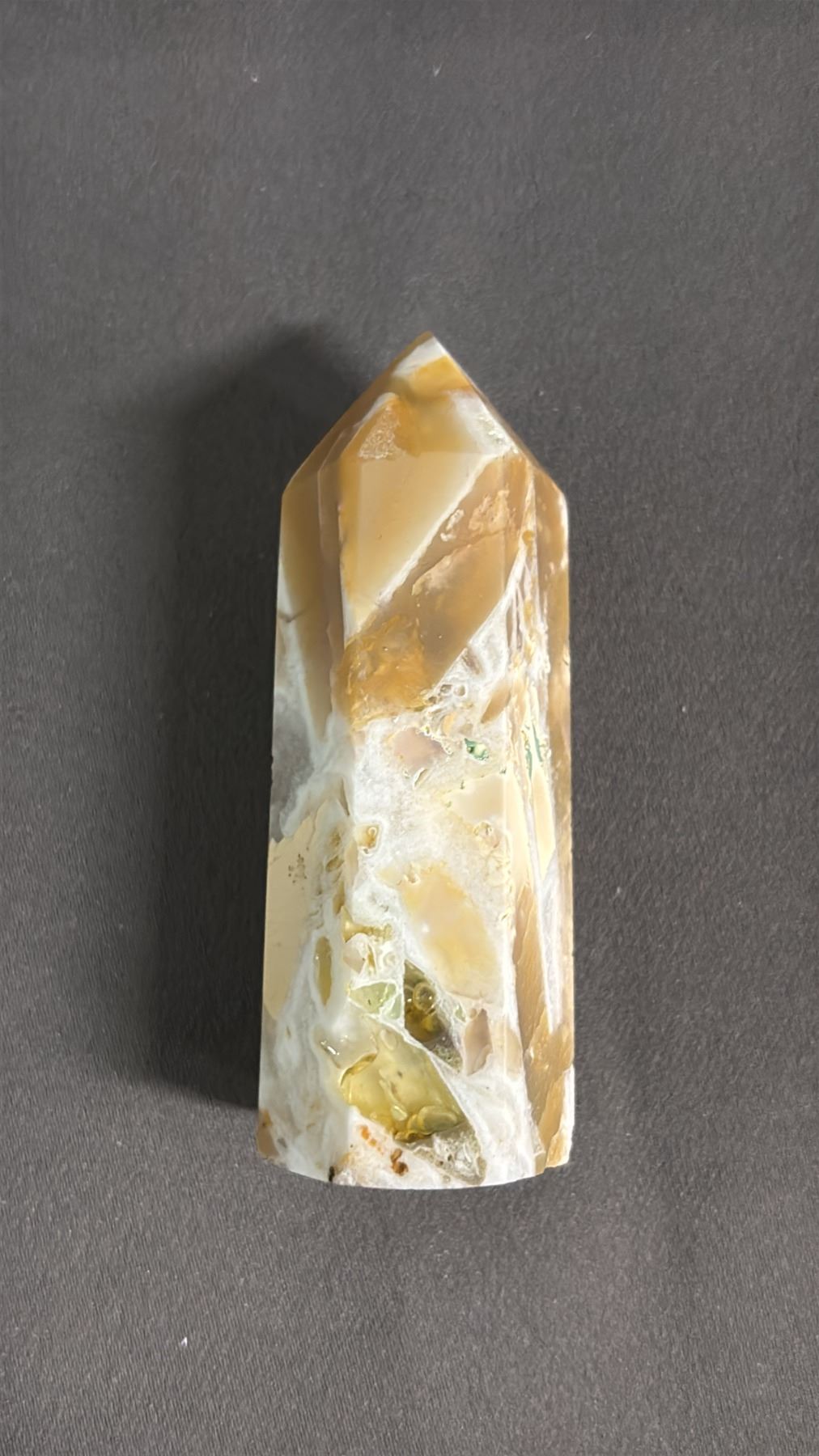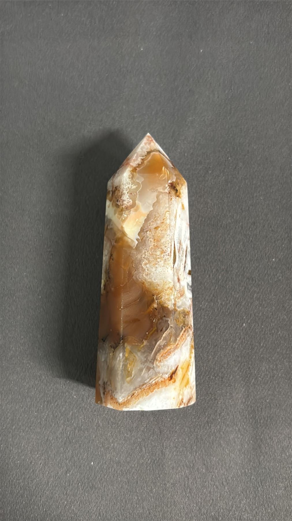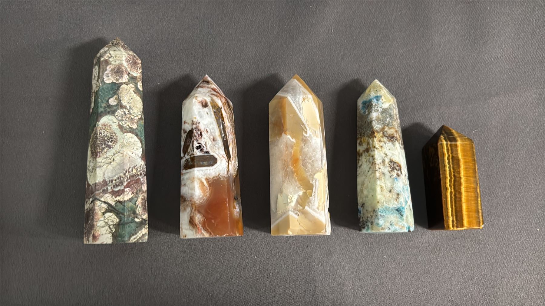 TIGER'S EYE, FLOWER AGATE, SODALITE, JASPER & CARNELIAN AGATE TOWERS: LARGEST IS APPROX. 3.5" TALL
