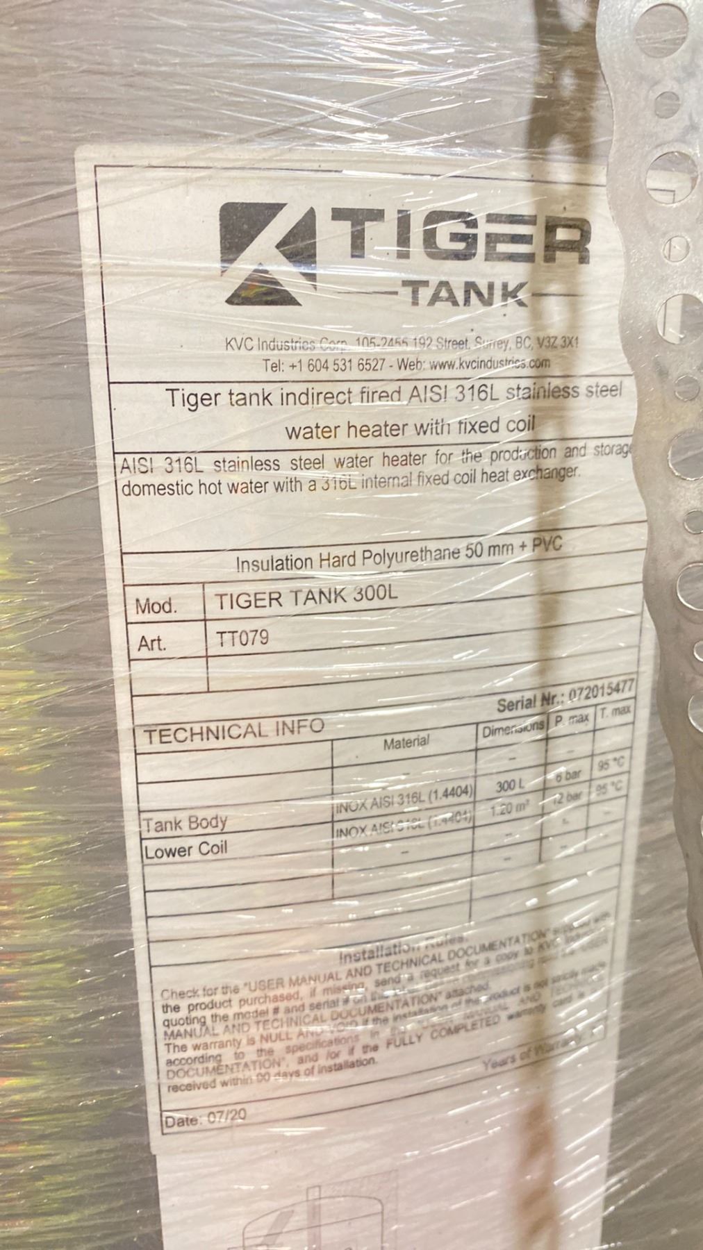 TIGER TANK 300L INDIRECT FIRED AISI 316L STAINLESS STEEL JACKETED WATER HEATER WITH FIXED COIL