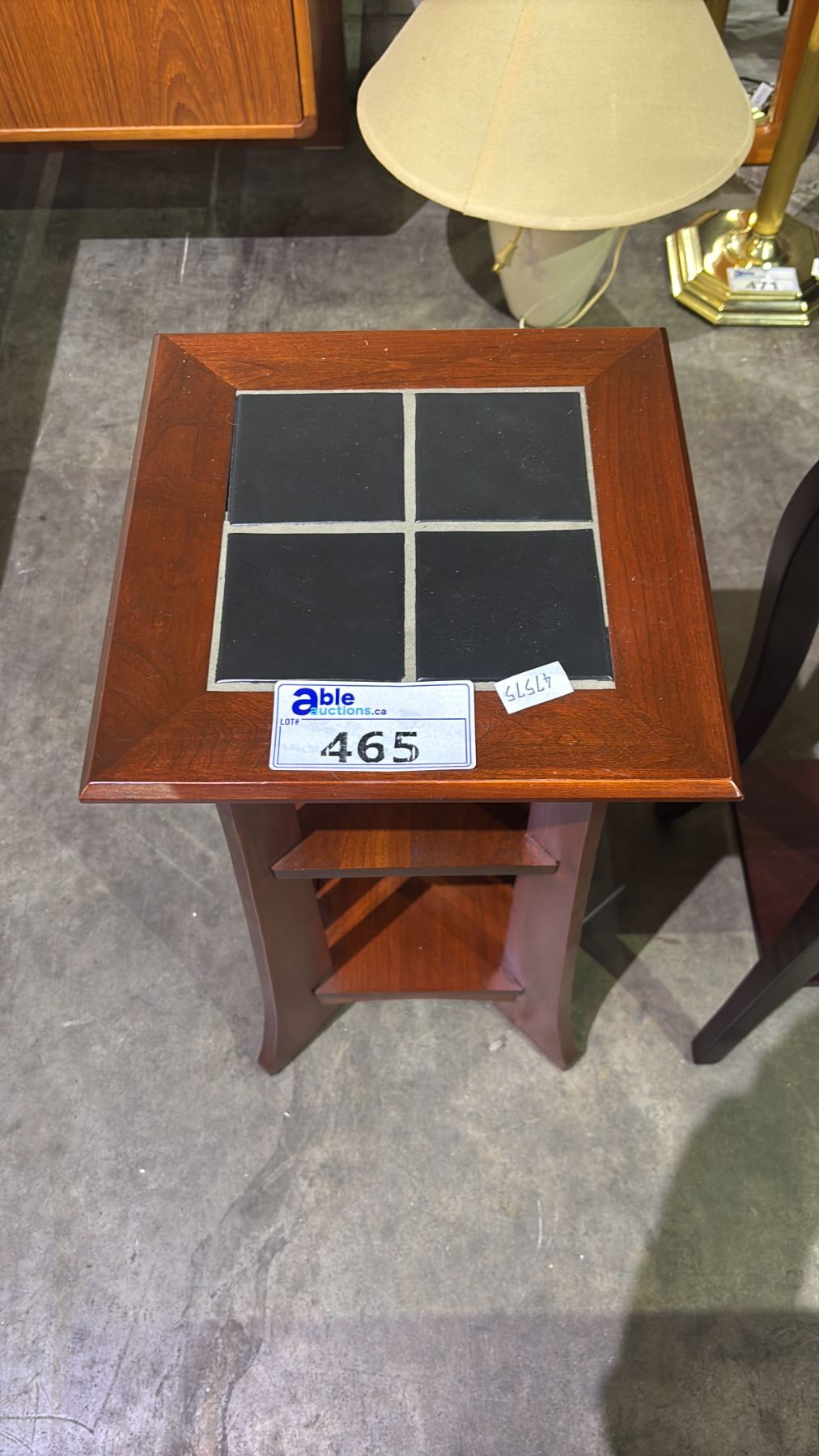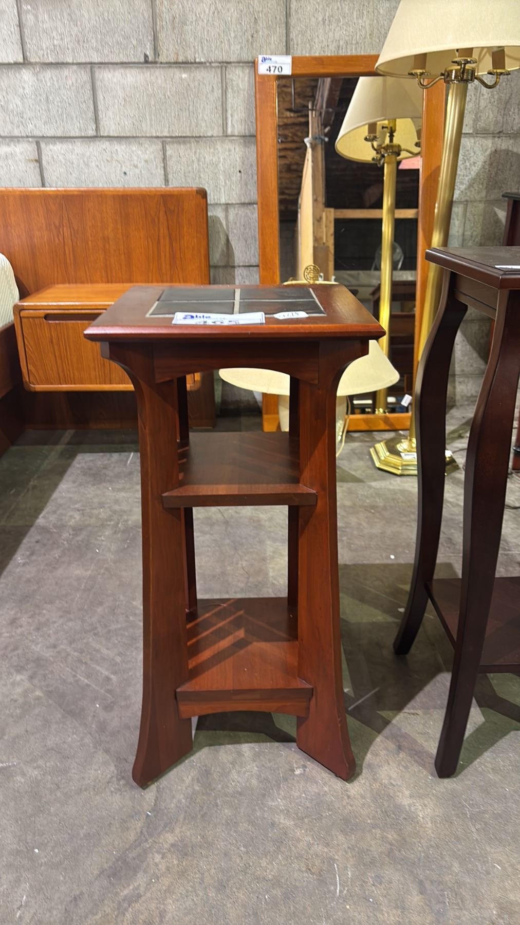 TILE IN-LAID TOP MAHOGANY FINISH SMALL PLANT STAND 13" X 13" X 26"