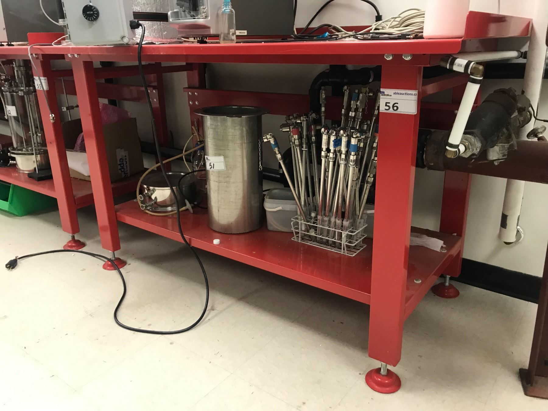 TITAN RED METAL WORKBENCH - APPROX. 5FT ACROSS X 3FT HIGH X 2 1/2FT WIDE