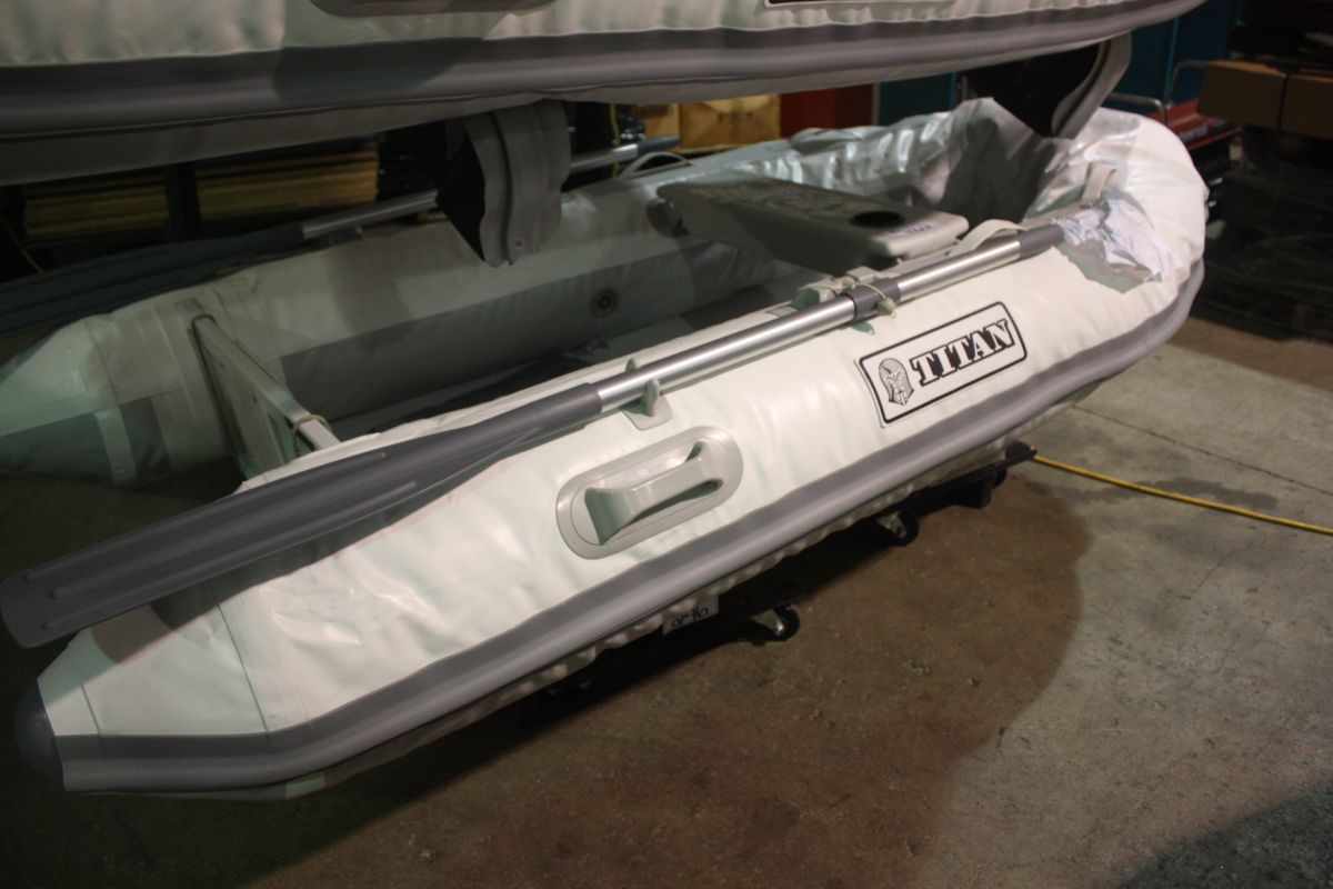 TITAN WHITE & GREY 8FT MODEL AL240 3 PERSON SOLID BOTTOM INFLATABLE BOAT RECOMMENDED MOTOR SIZE = 5HP
