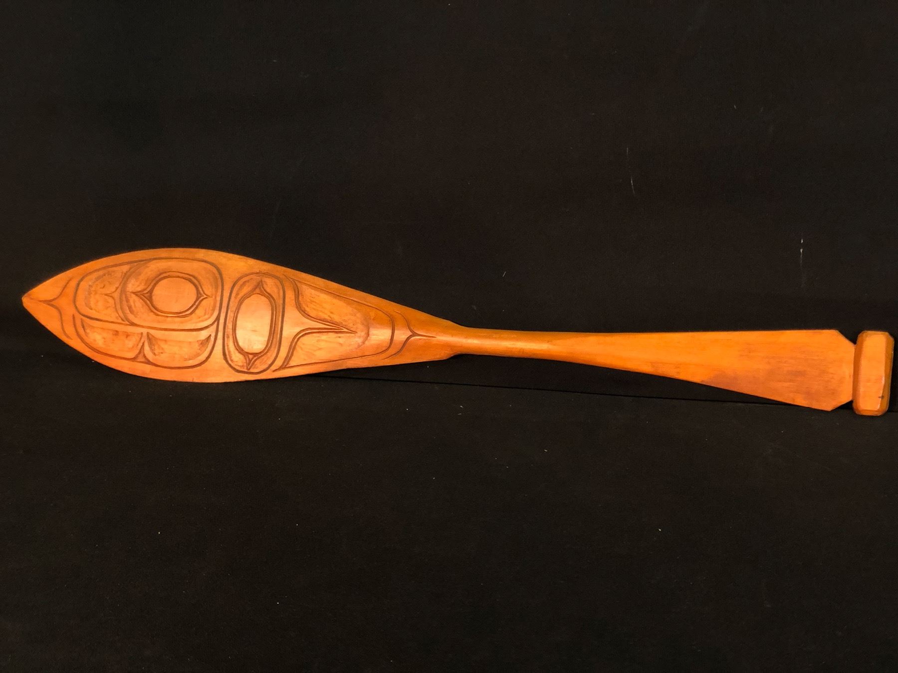 TLINGIT NATIVE CARVED DECORATIVE DANCE PADDLE, 32.5" LONG