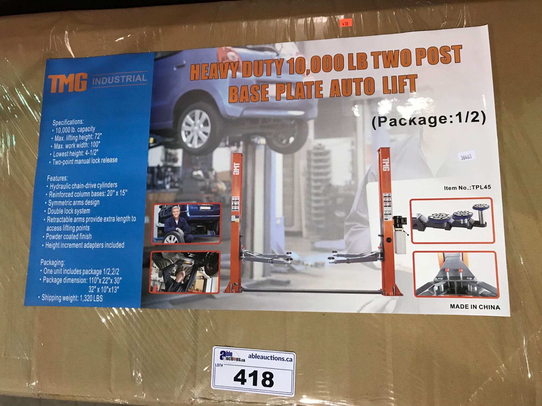 TMG INDUSTRIAL HEAVY DUTY 10,000LBS TWO POST BASE PLATE AUTO LIFT WITH HYDRAULIC POWER UNIT