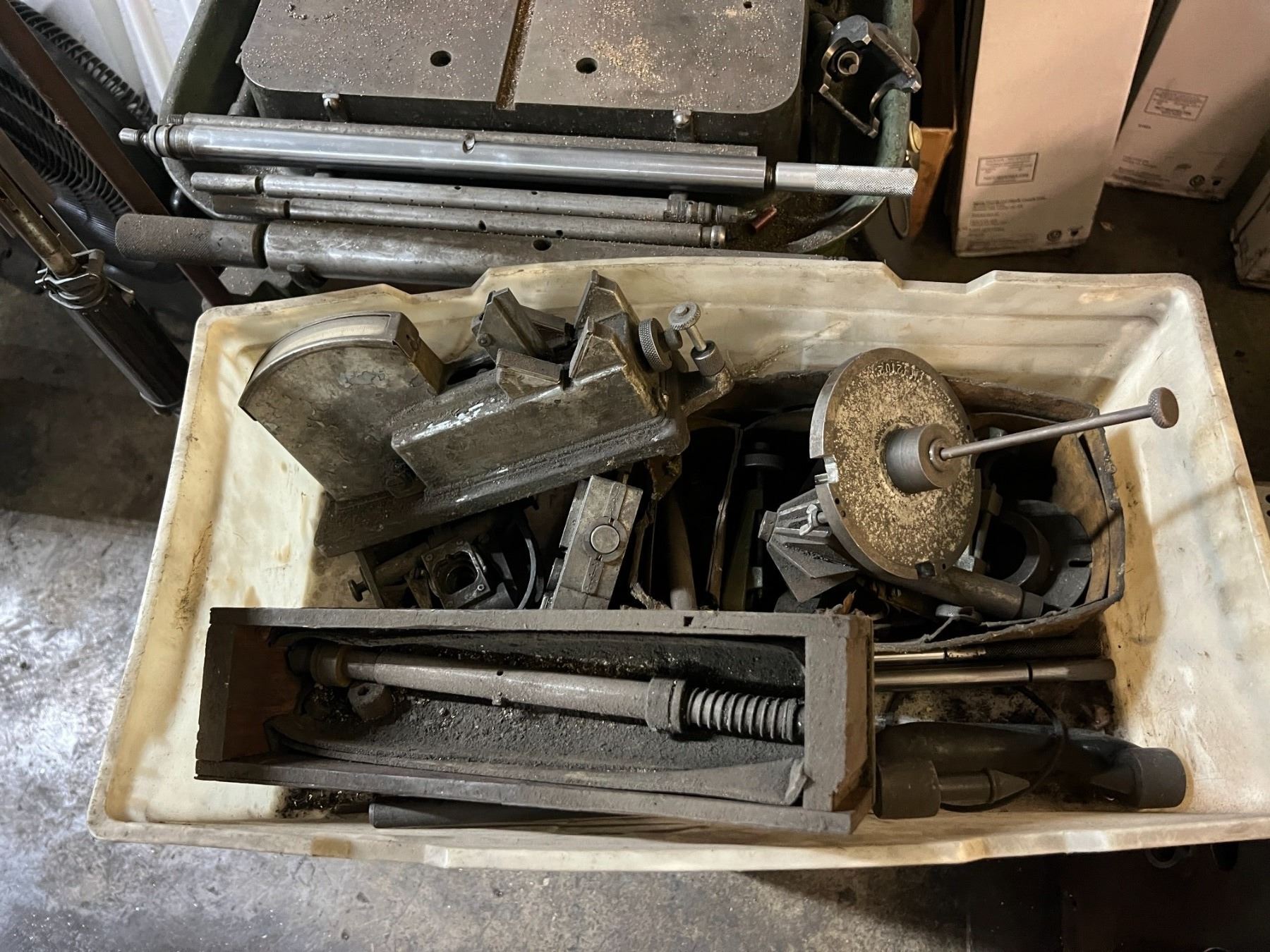 TOBIN-ARP PM-2500 CONNECTING ROD & WRIST PIN BORING TOOL. COMES WITH PIECES AS SHOWN PLUS BOX OF TOOLING. 110V (ONLINE PRICE $5,000-7,000)
