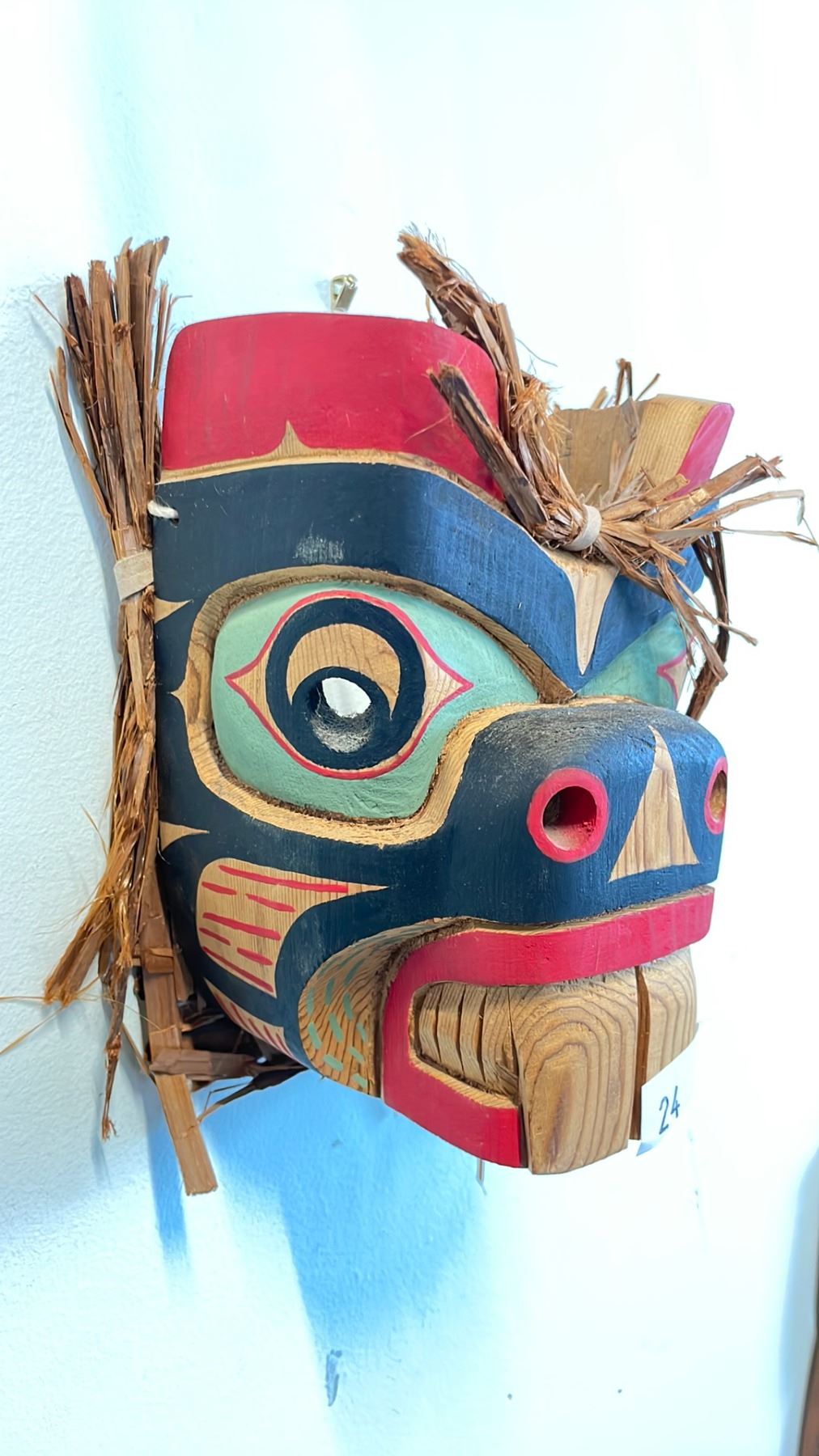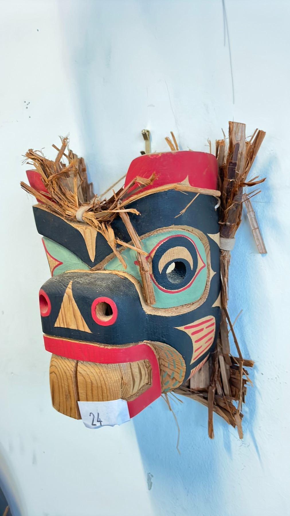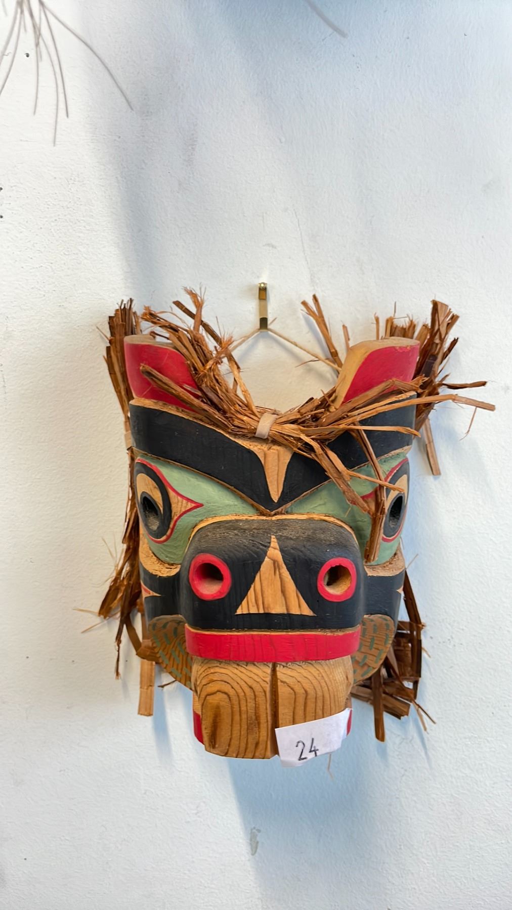 TONY GULARI SIGNED CEDAR BEAVER MASK WITH CEDAR HAIR ON SIDES AND TOP APPROX 9"L X5"W X8 3/4"H