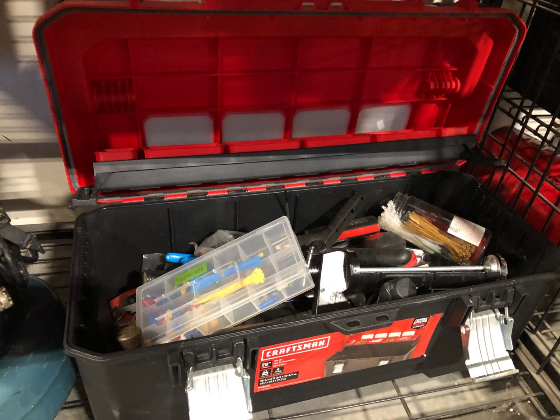 TOOL BOX INCLUDING CONTENTS, ANVIL 2G PANCAKE AIR COMPRESSOR AND SHOP AIR 500 AIR MOVER