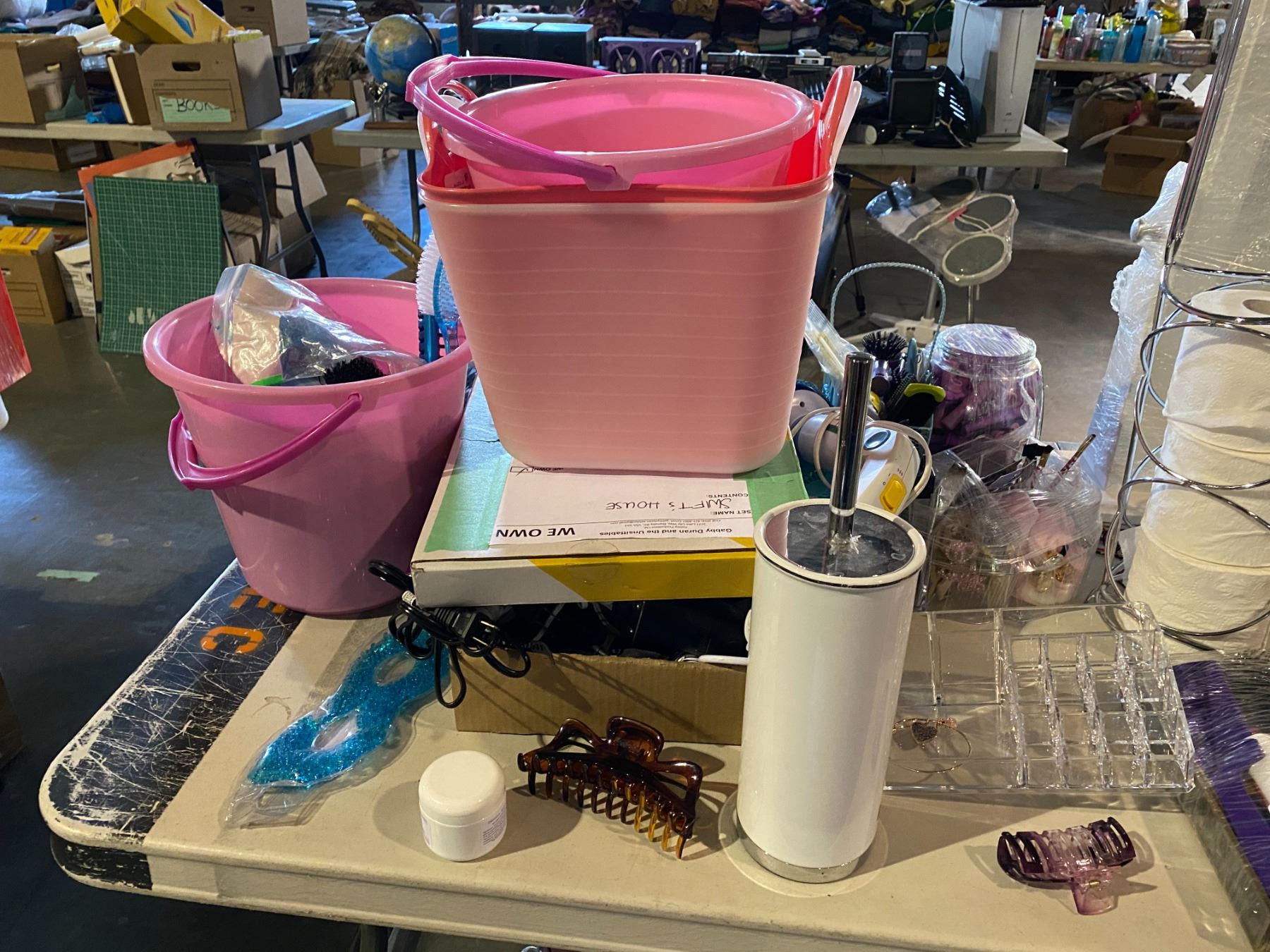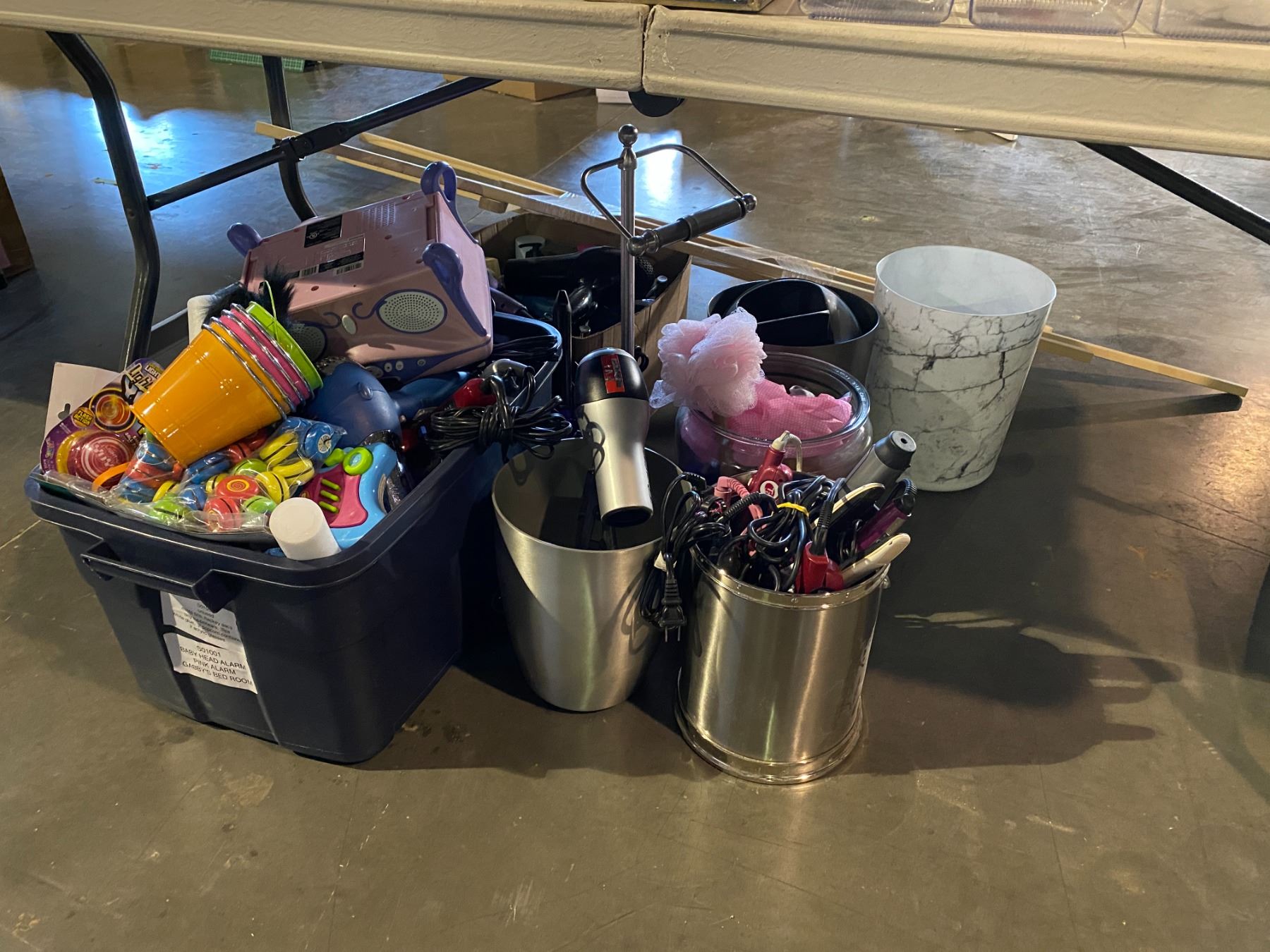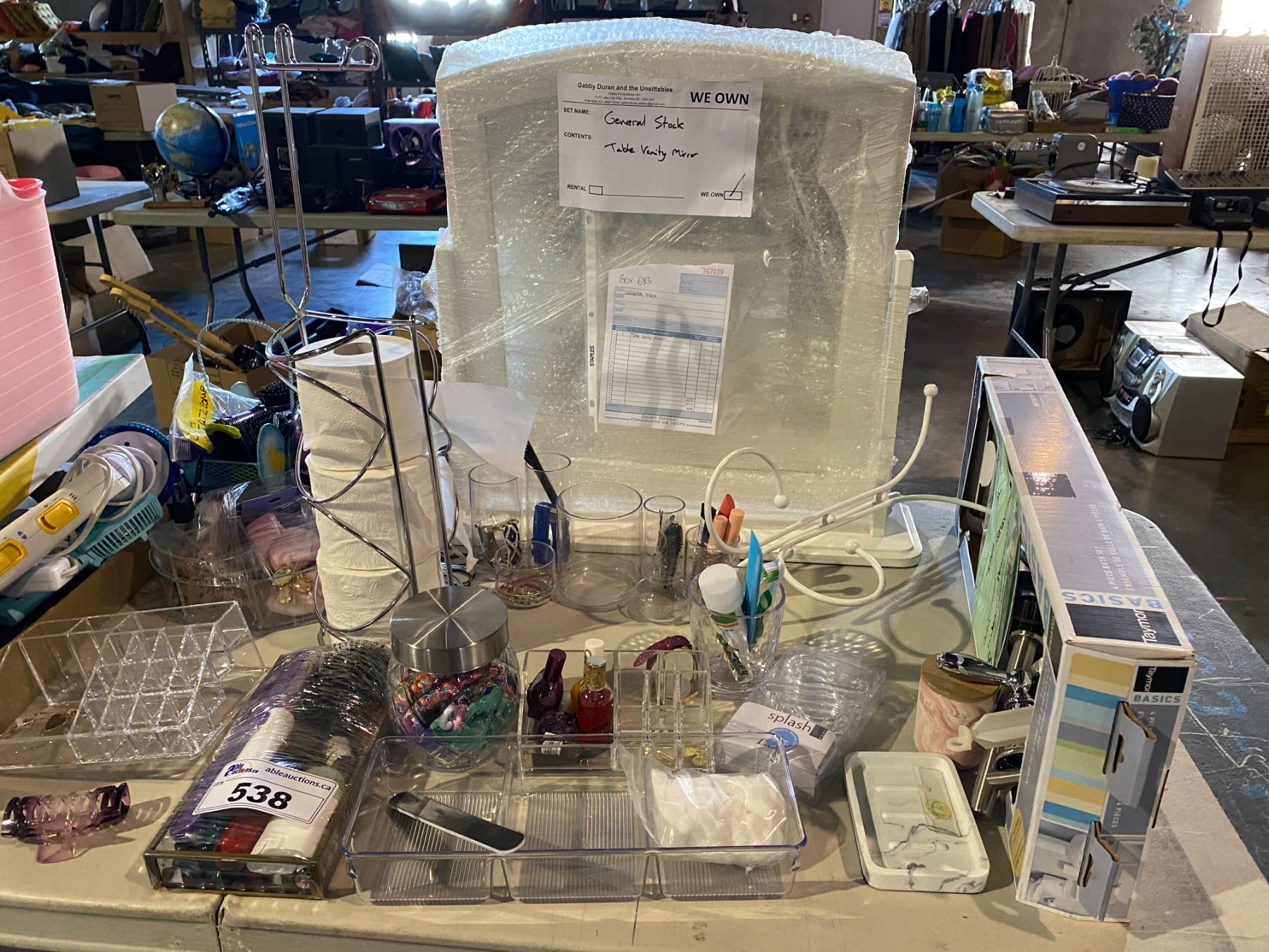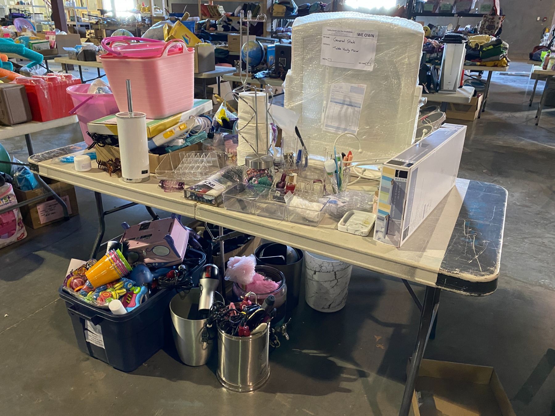 TOP + BOTTOM TABLE OF ASSORTED SET DEC ITEMS AND MISC. ITEMS (TABLE NOT INCLUDED)