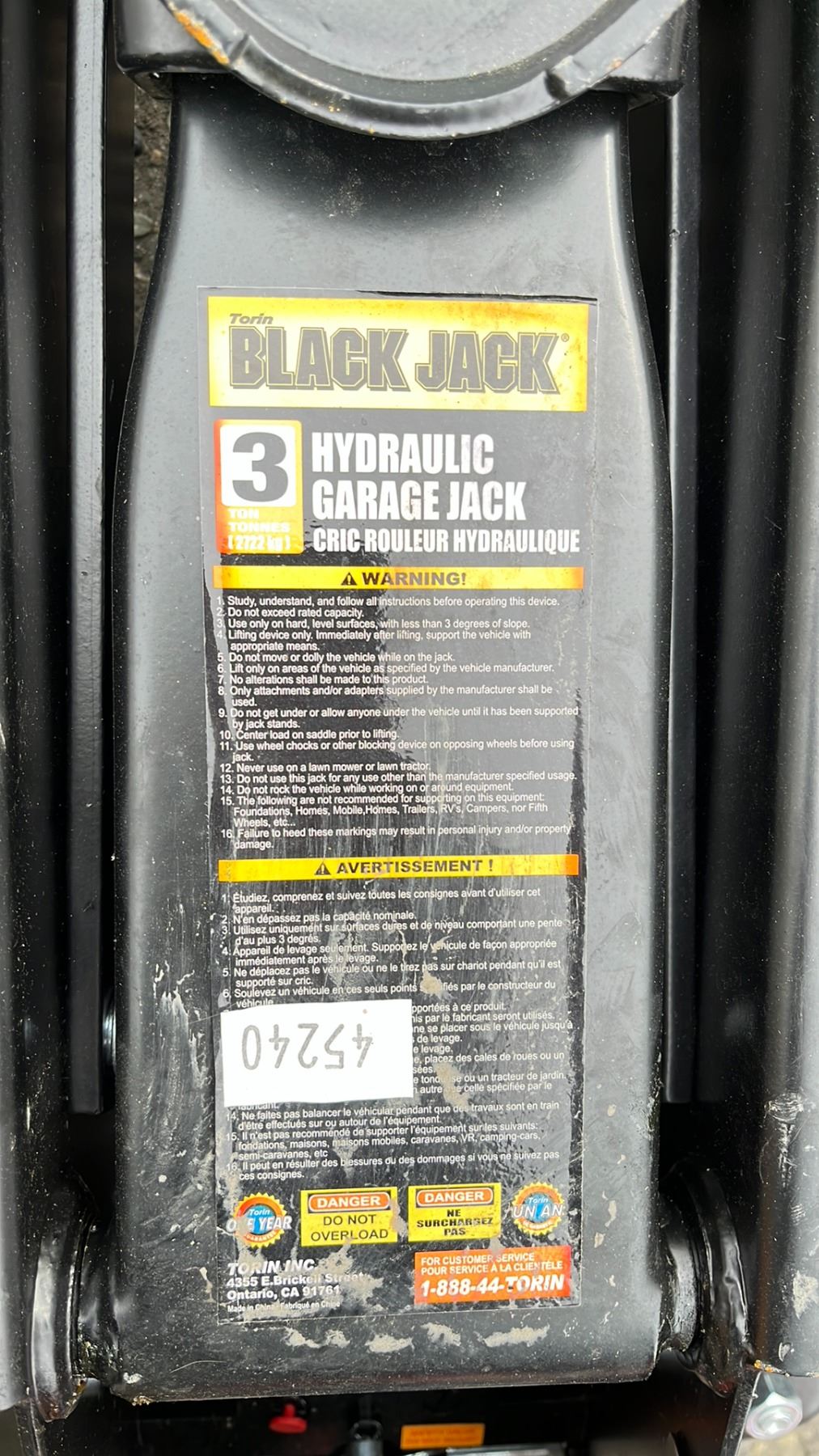 TORIN BLACK JACK 3 TON HYDRAULIC GARAGE JACK *MISSING HANDLE*