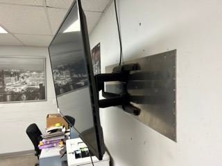 TOSHIBA 55" TELEVISION WITH TELESCOPING WALL MOUNT & POWER CABLE ( NO REMOTE, MUST HAVE PROPER TOOLS TO REMOVE FROM WALL )