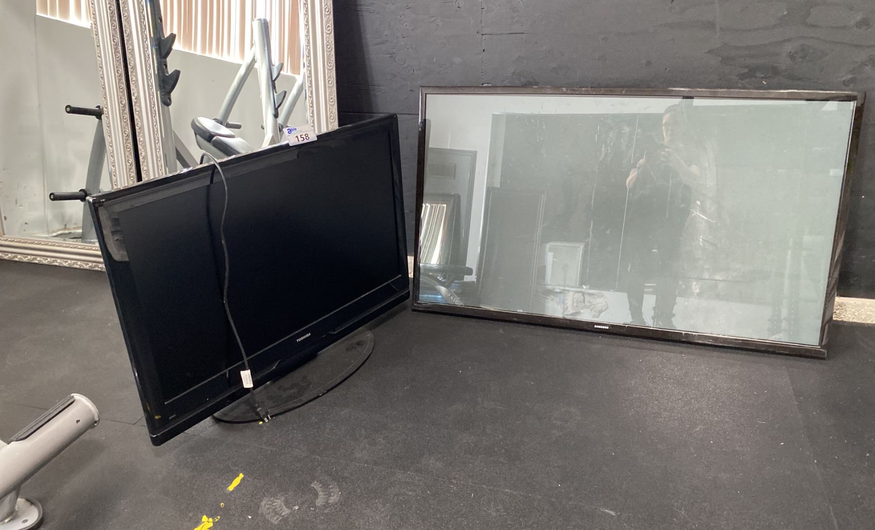 TOSHIBA AND SAMSUNG TVS, SAMSUNG WITH WALL MOUNT AND DAMAGE