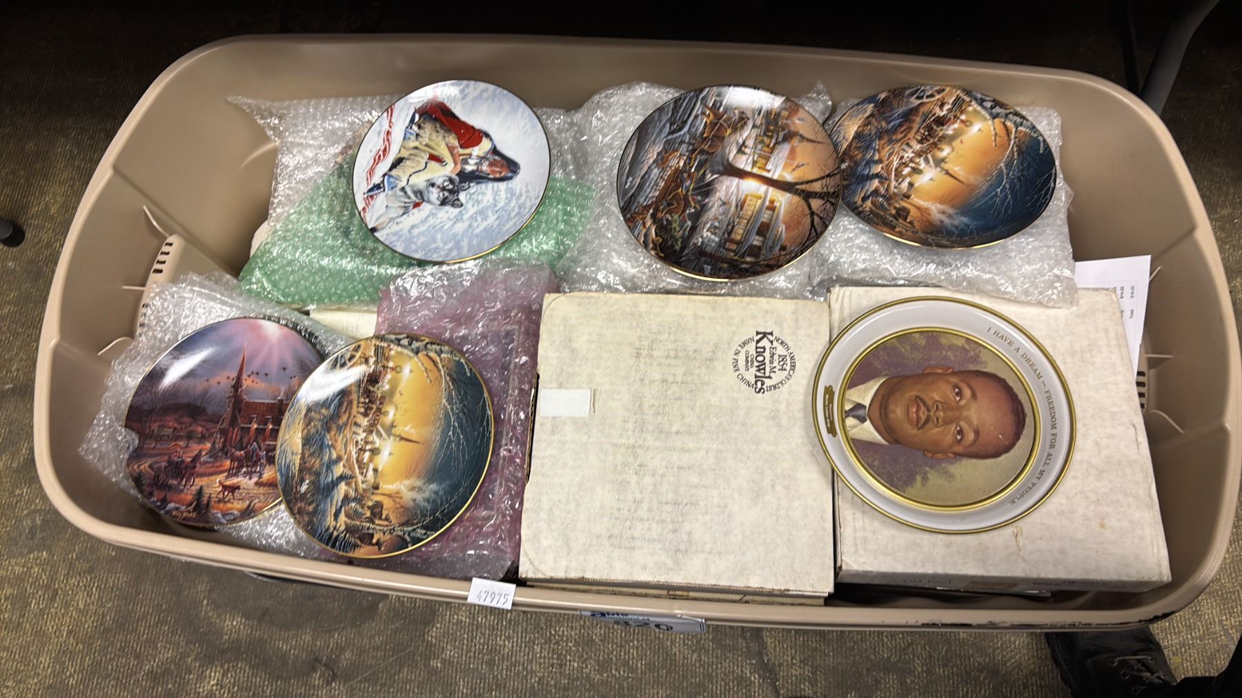 TOTE OF ASSORTED COLLECTOR PLATES: *TOTE INCLUDED*