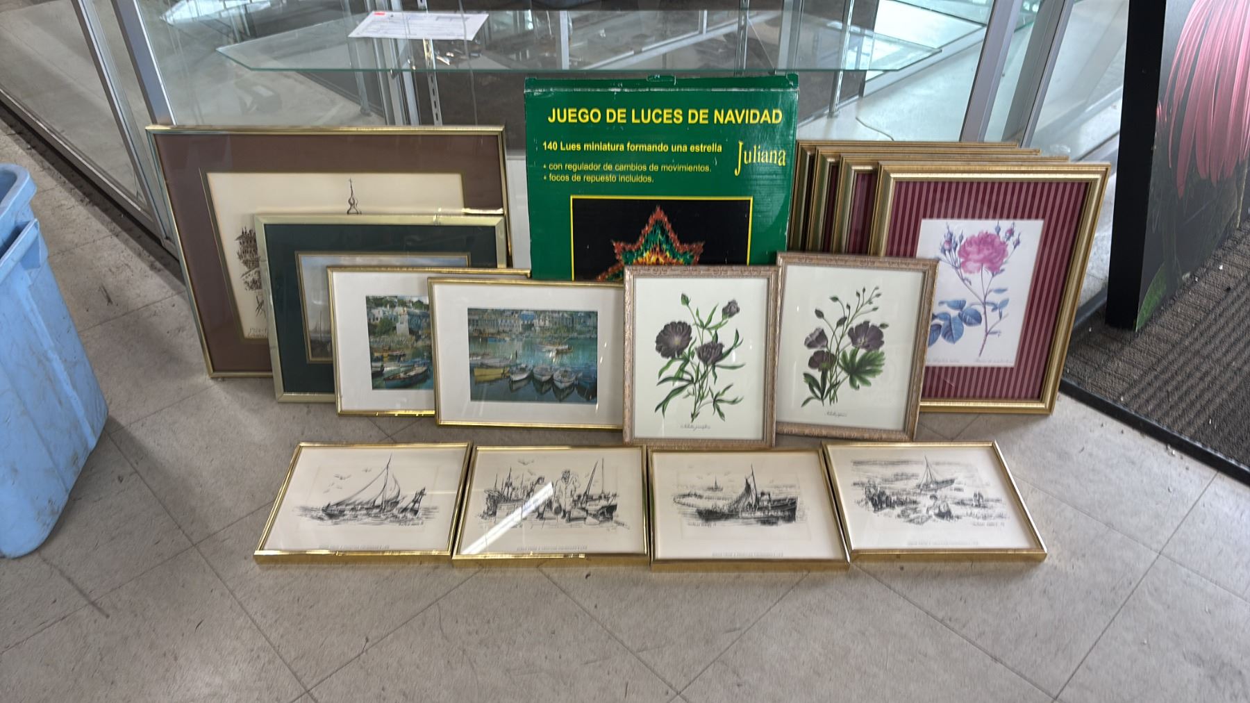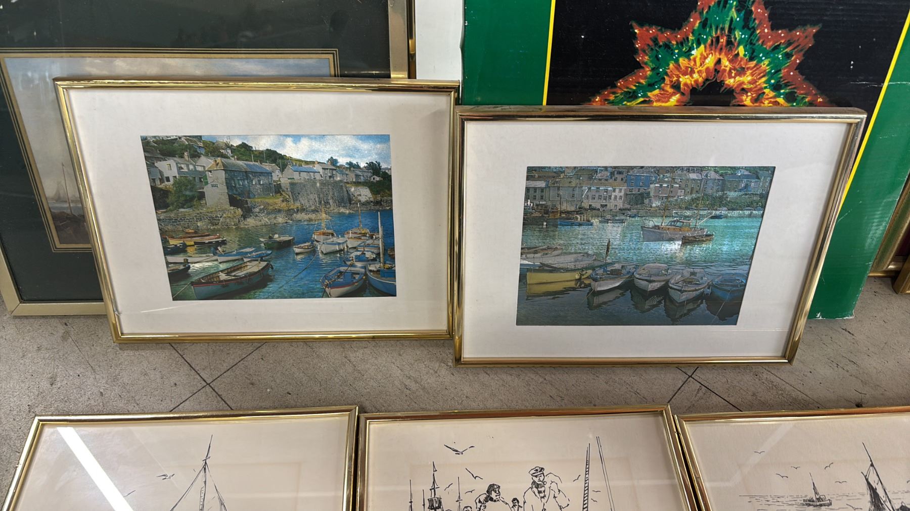 TOTE OF ASSORTED FRAMED ART & AN ILLUMINATED CHRISTMAS STAR