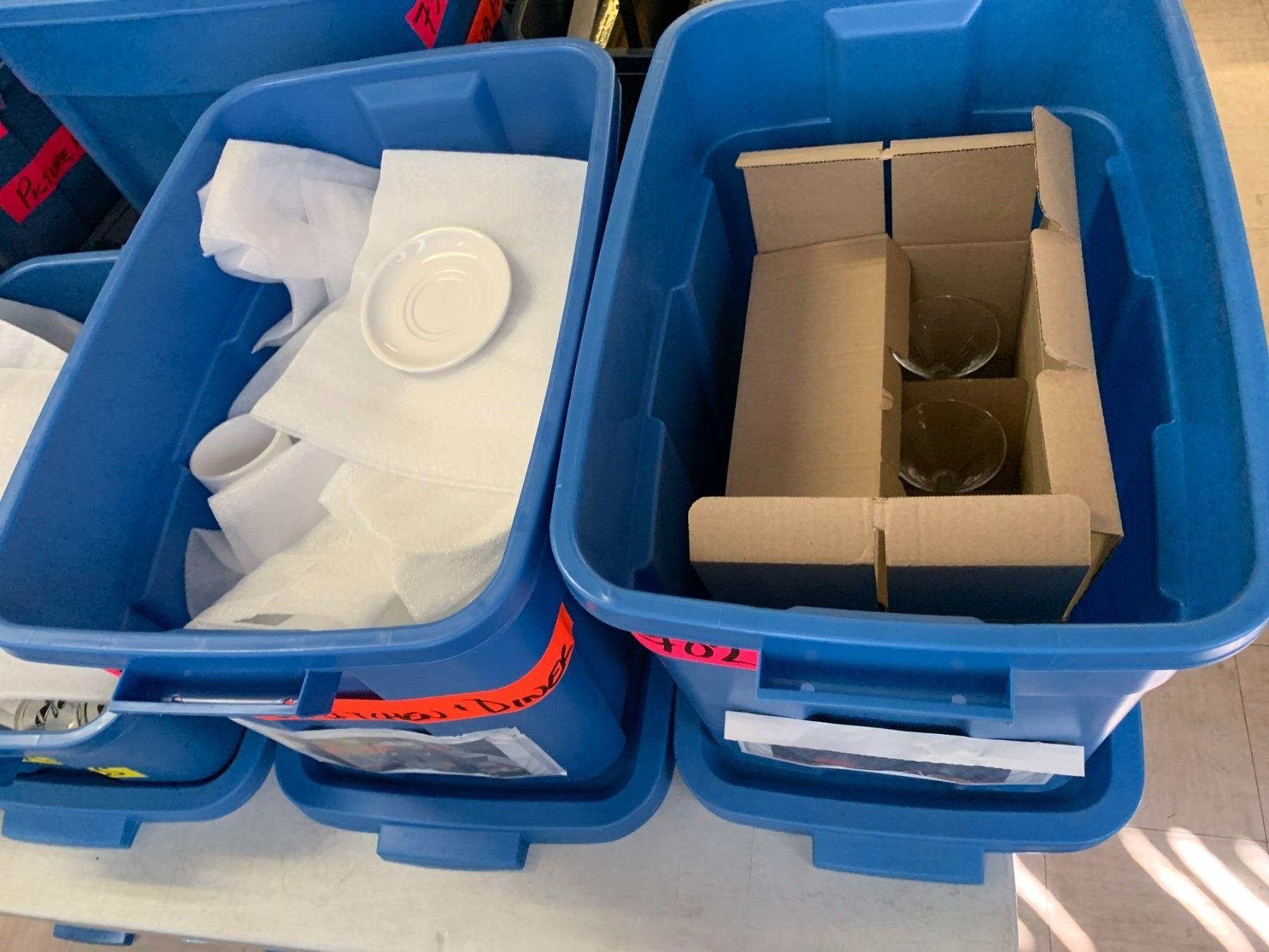 TOTES OF ASSORTED ITEMS INCLUDING; THROW PILLOWS, GLASSWARE, DISHWARE & MORE (TABLE NOT INCLUDED)