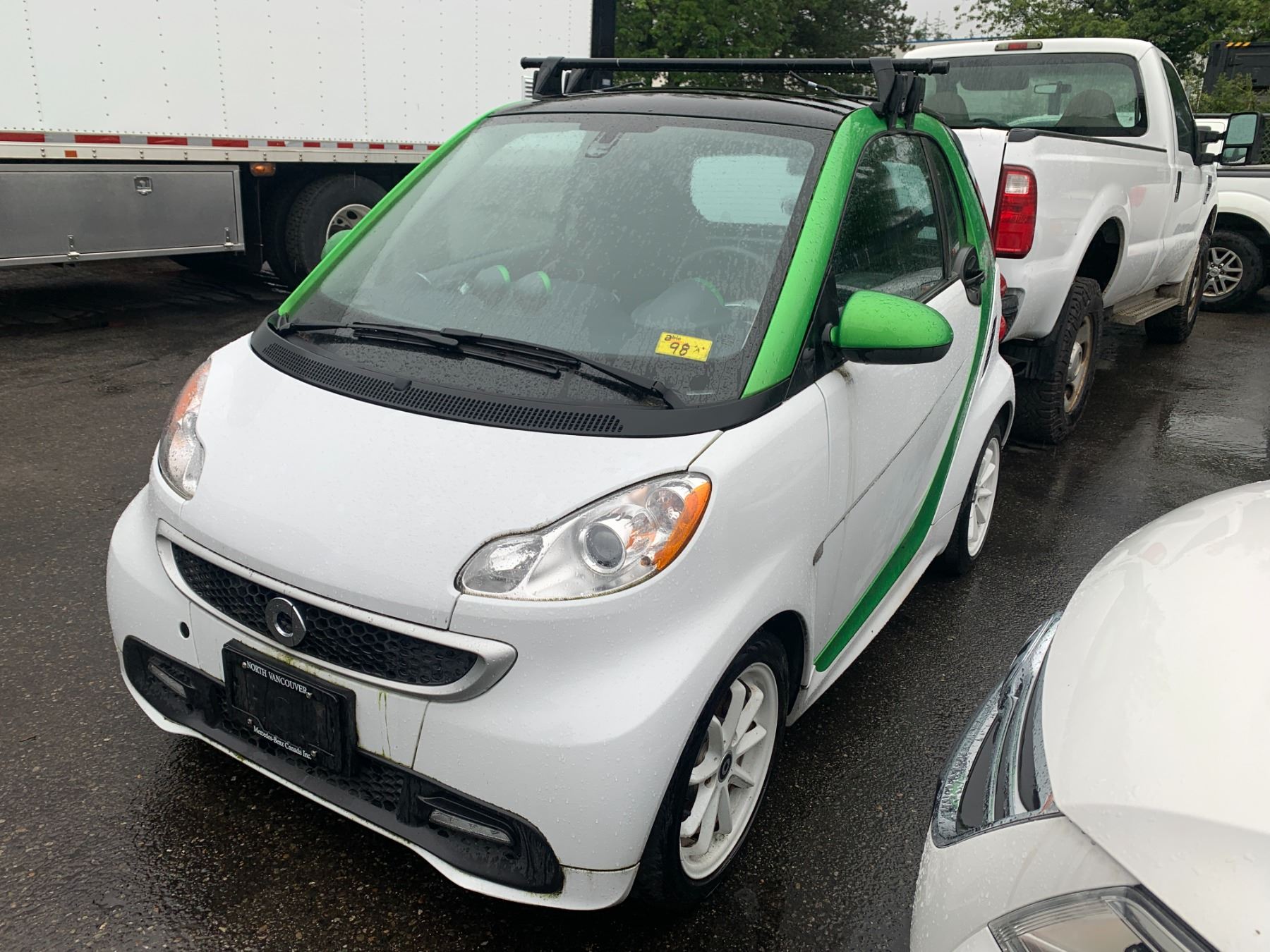 *TOW* 2014 SMART FRTWO ELECTRIC WHITE VIN WMEEJ9AA7EK768375 TMU, ELECTRIC (E), AUTOMATIC, 2DRCP, HAS REGISTRATION: YES, HAS KEYS: YES FEATURES: RADIO, POWER WINDOWS, POWER LOCKS, TILT WHEEL, AIR COND, LEATHER TRIM, HEATED SEAT NEEDS NEW BATTERY, YAKIMA ROOF RACK, MOON ROOF, MOLD ON SEATS, DOES NOT START, MUST TOW NO ICBC DECLARATIONS