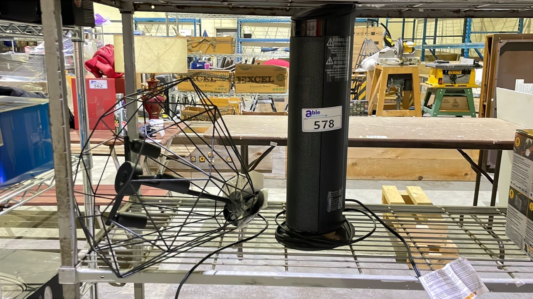 TOWER HEATER & HANGING LIGHT FIXTURE (UNKNOWN WORKING CONDITION, MAY BE MISSING PARTS & PIECES