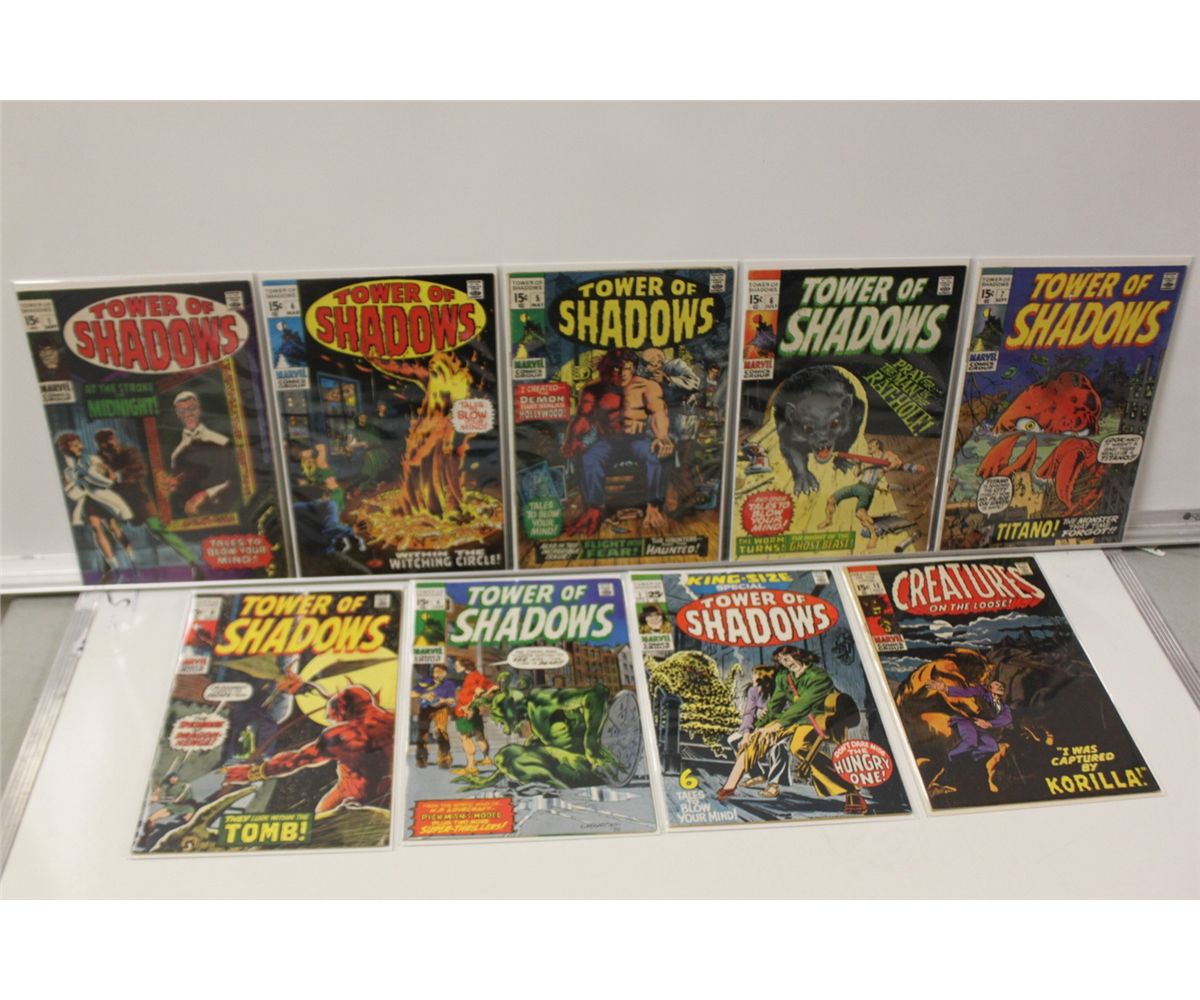 TOWER OF SHADOWS/CREATURES ON THE LOOSE (MARVEL) NEAR COMPLETE BRONZE RUN.  27 DIFFERENT ISSUES BETWEEN #1-37, TITLE CHANGED WITH #10 (1961-75) MIXED GRADES, MANY SHARP COPIES.