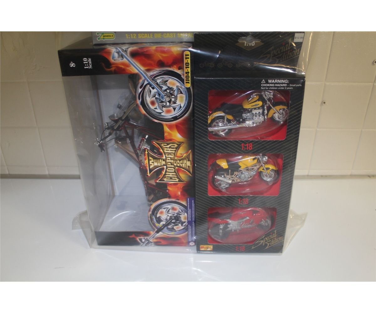 TOY LOT- ASSORTED 1:10, 1:18 AND 1: 12 SCALE MOTORCYCLE DIE CAST MODELS NEW IN BOX