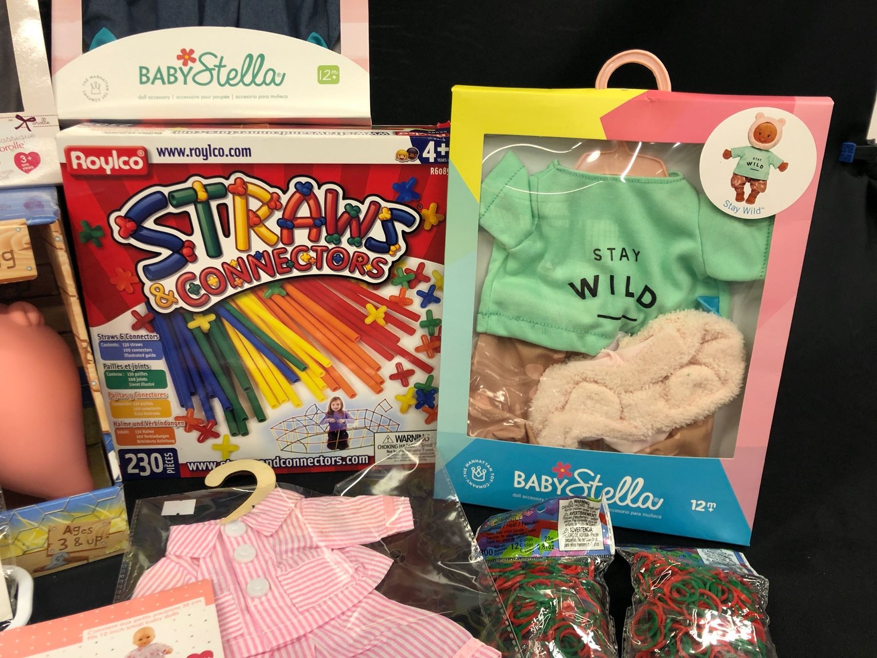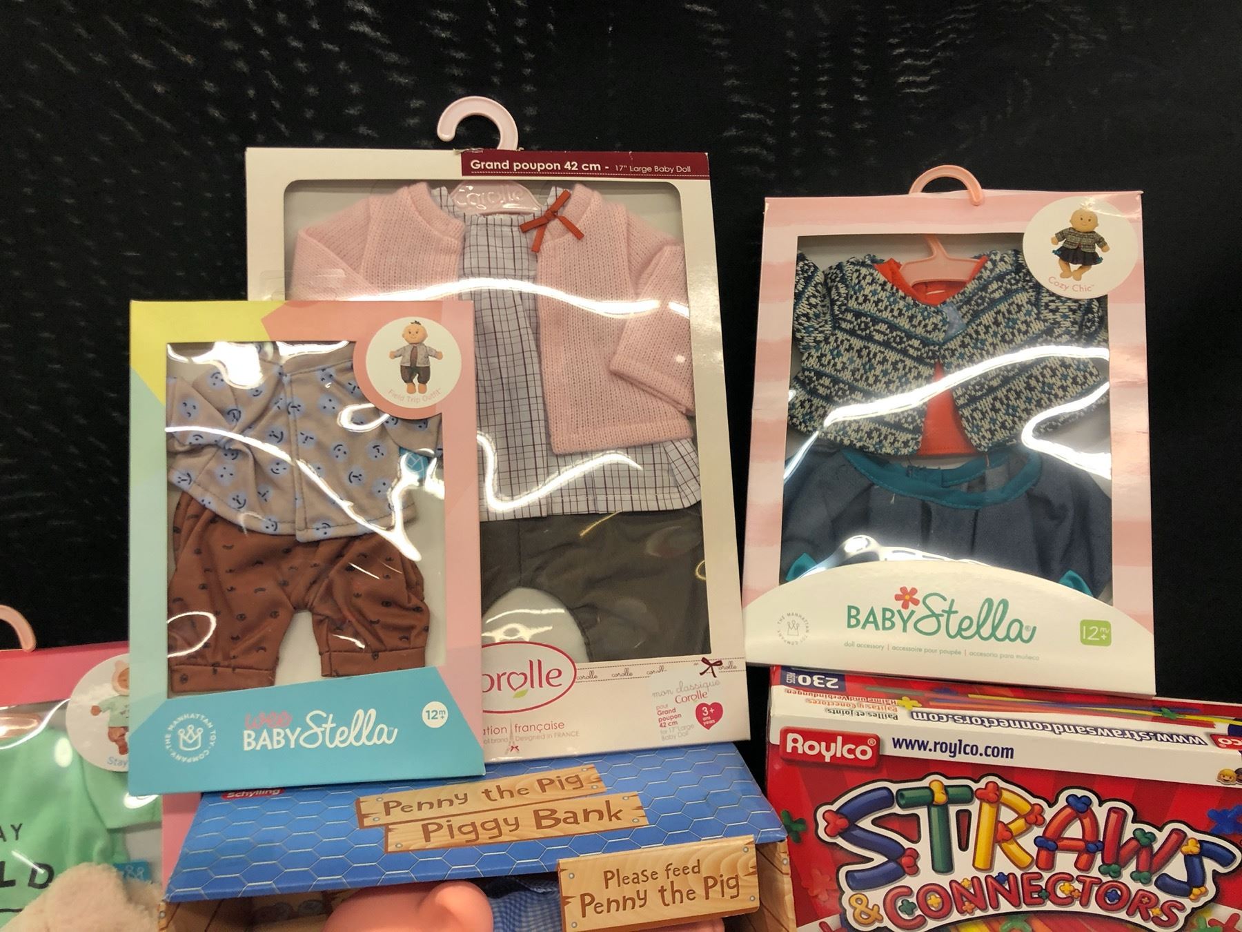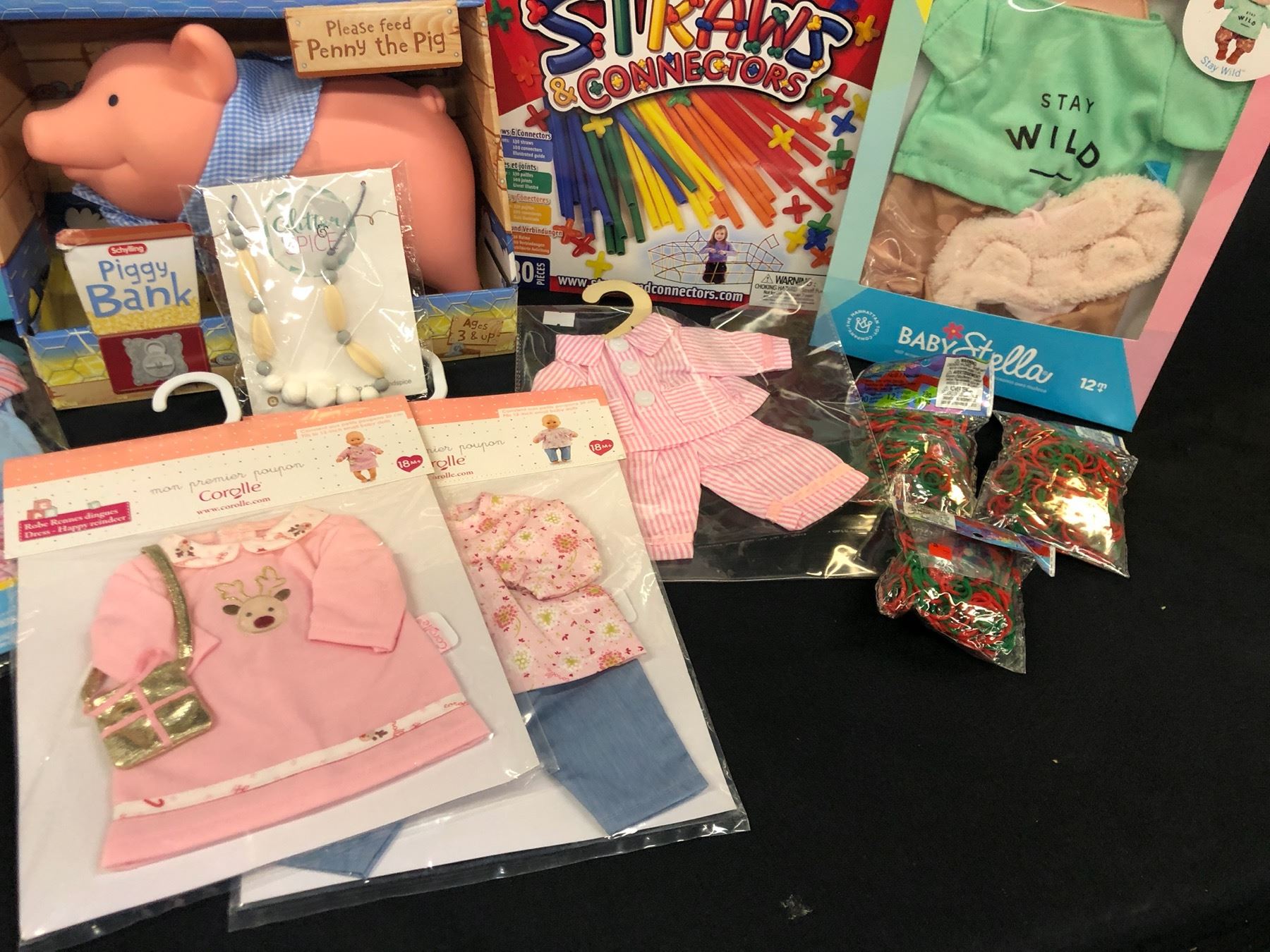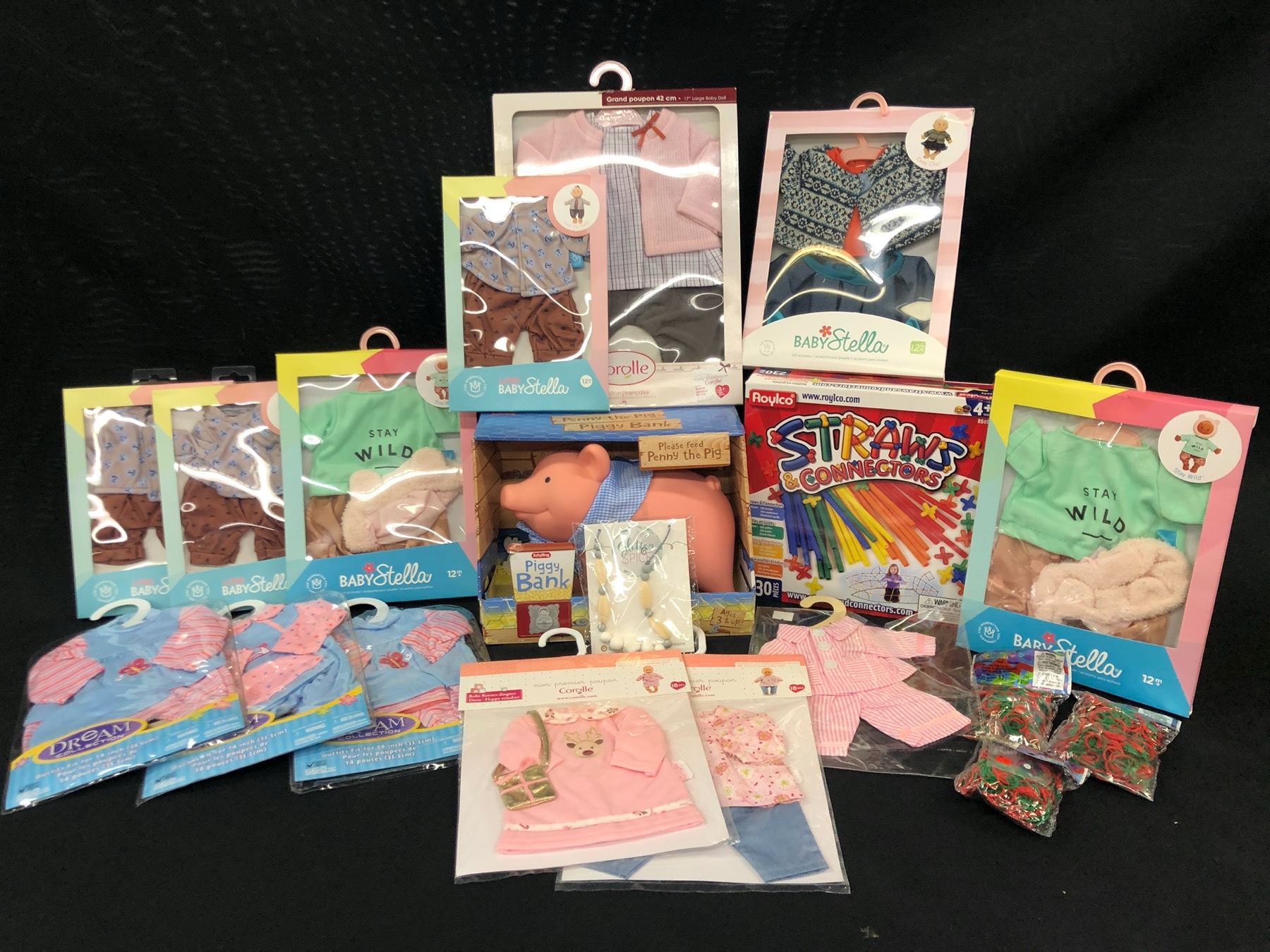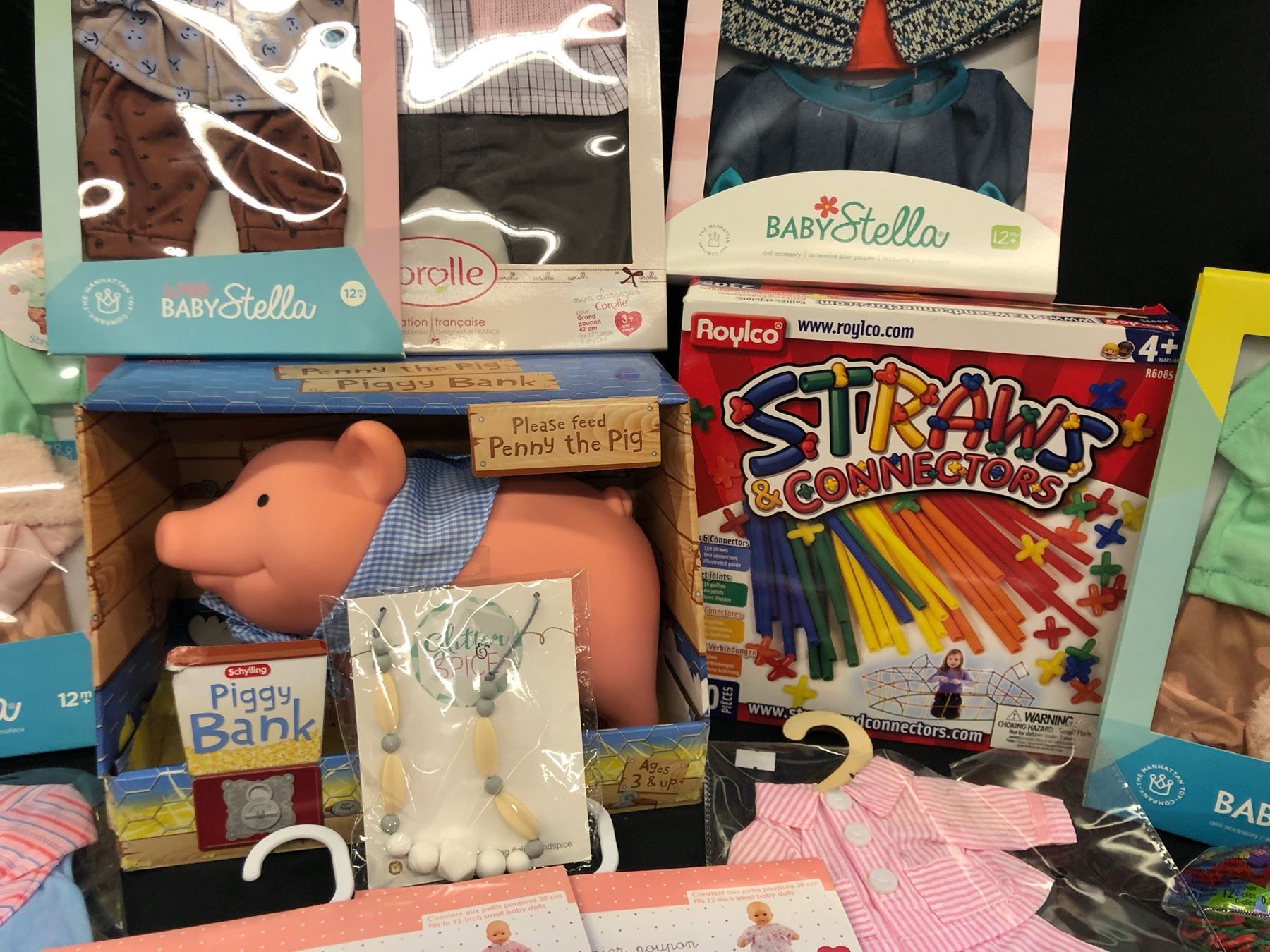 TOYS INC. DOLL CLOTHES SETS, PIGGY BANK, AND ARTS AND CRAFTS