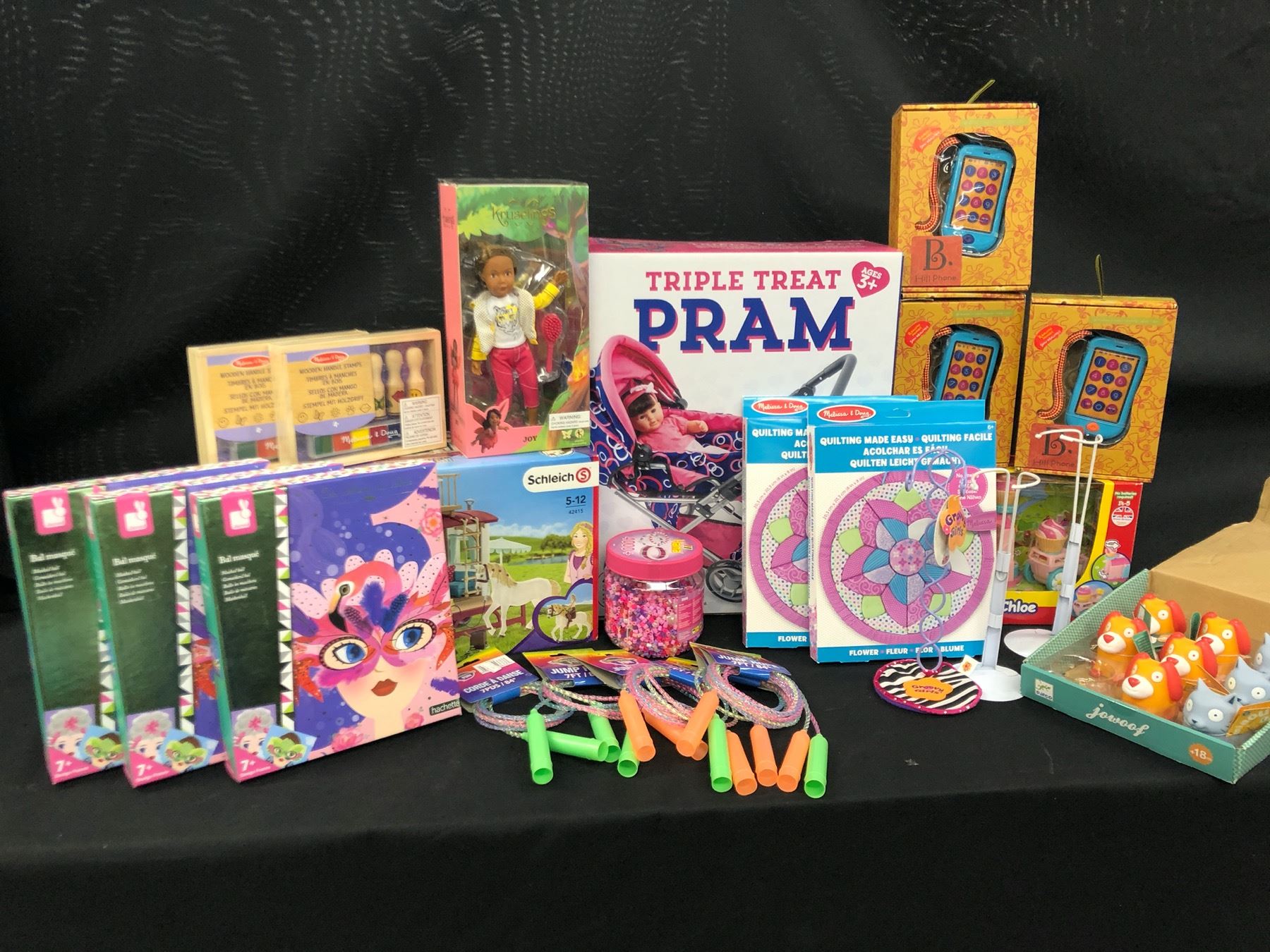 TOYS INC. DOLL STROLLER, JUMP ROPES, QUILT MAKING KITS AND MORE