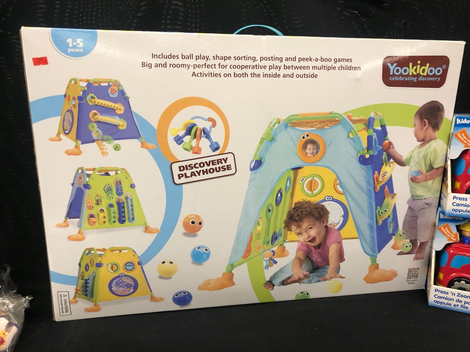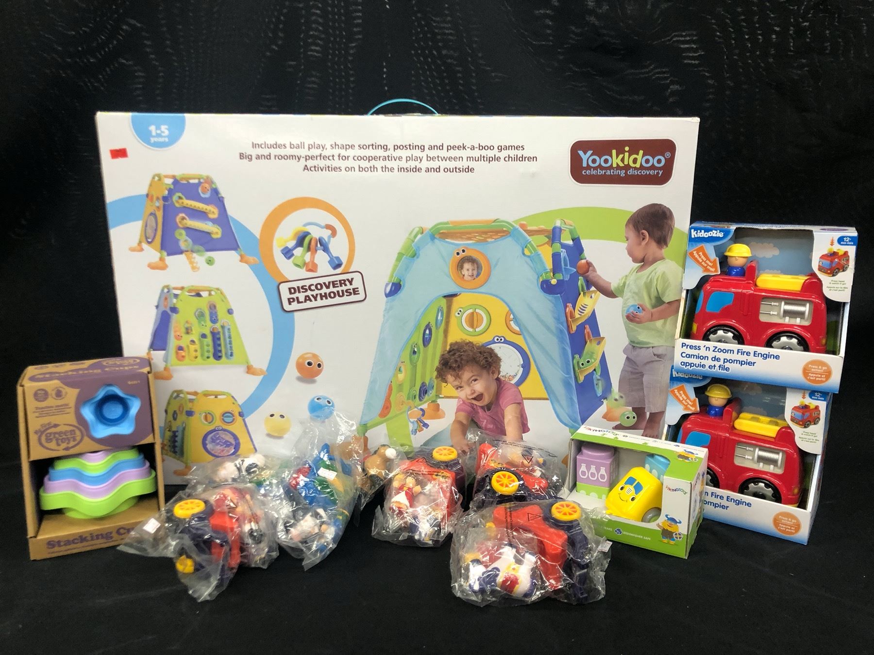 TOYS INC. YOOKIDOO DISCOVERY PLAY HOUSE, FIRE ENGINE TOYS, STACKING CUPS AND MORE