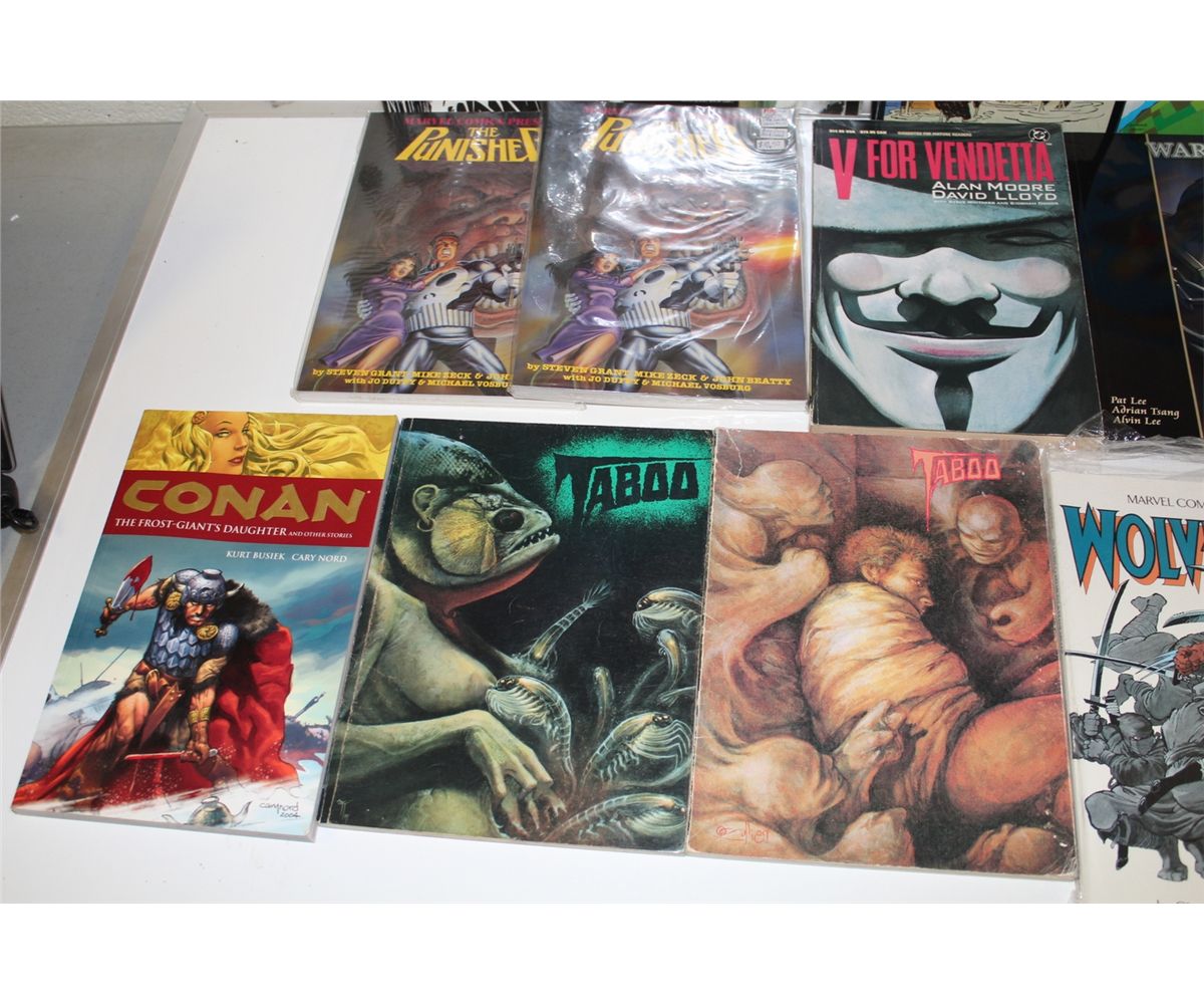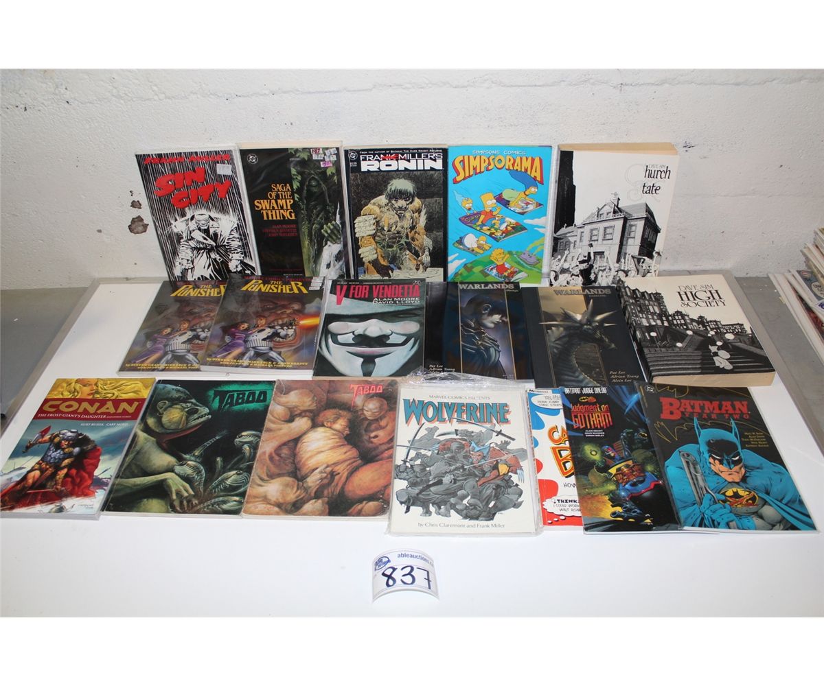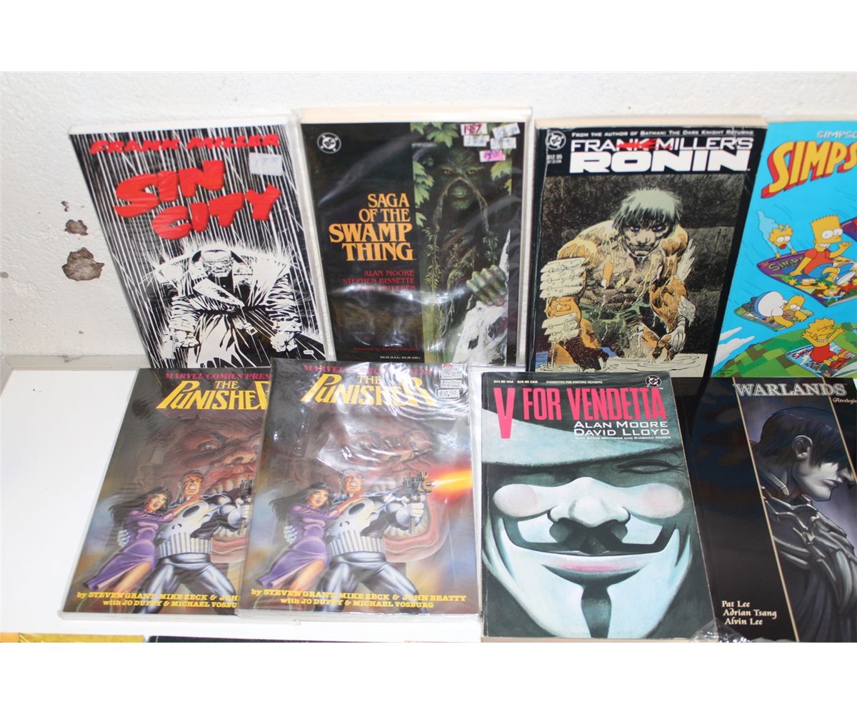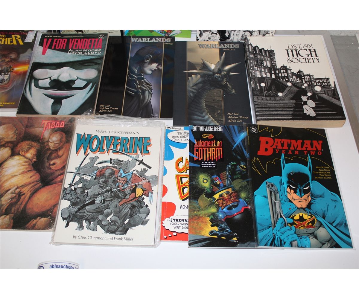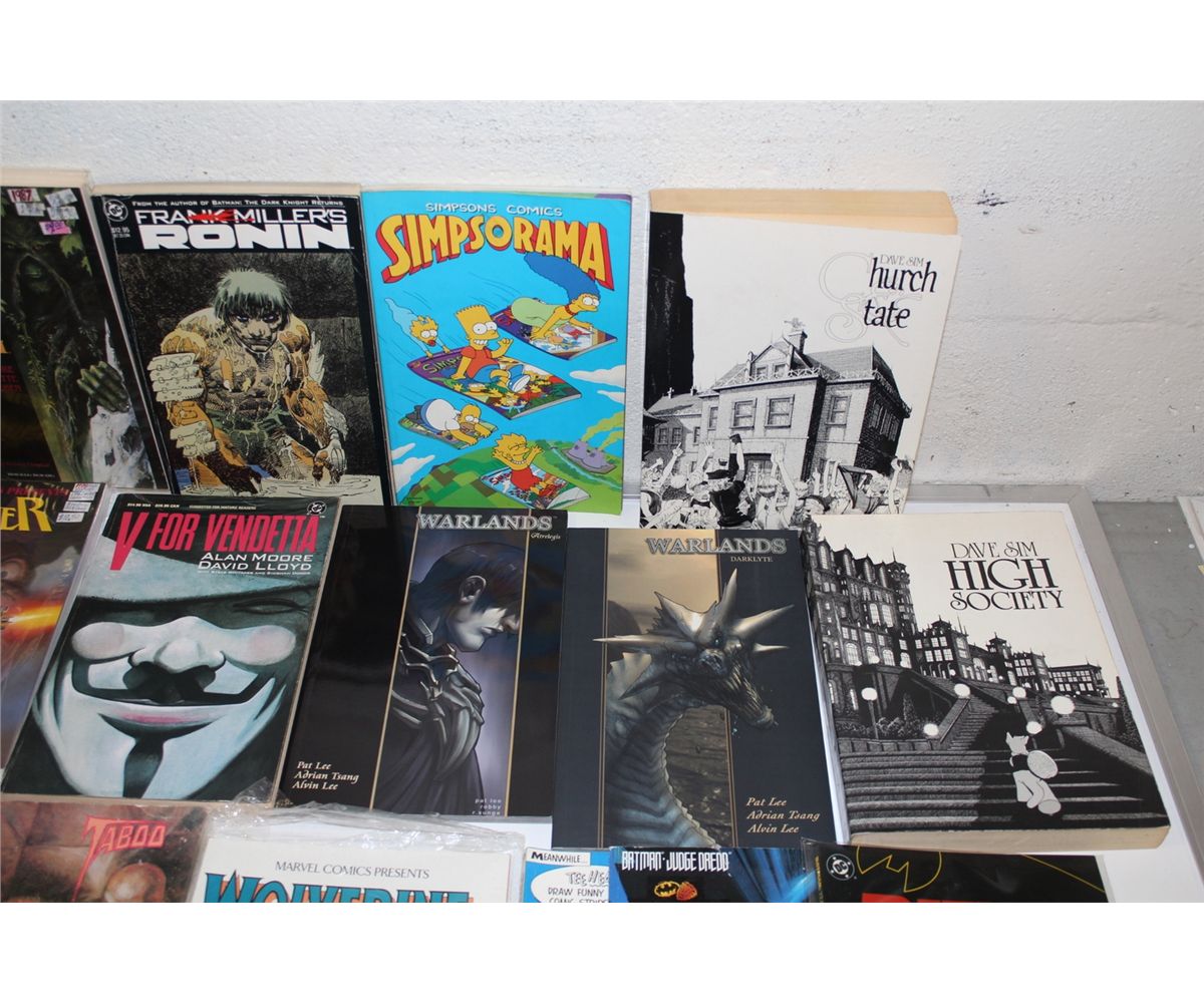 TRADE PAPERBACKS MIXED LOT (1980'S-90'S) LARGE LOT OF 17 VARIOUS TRADES. INCLUDES RONIN, V FOR VENDETTA, 2 DAVE SIM EDITIONS, ETC. MIXED GRADES, MANY SHARP COPIES!